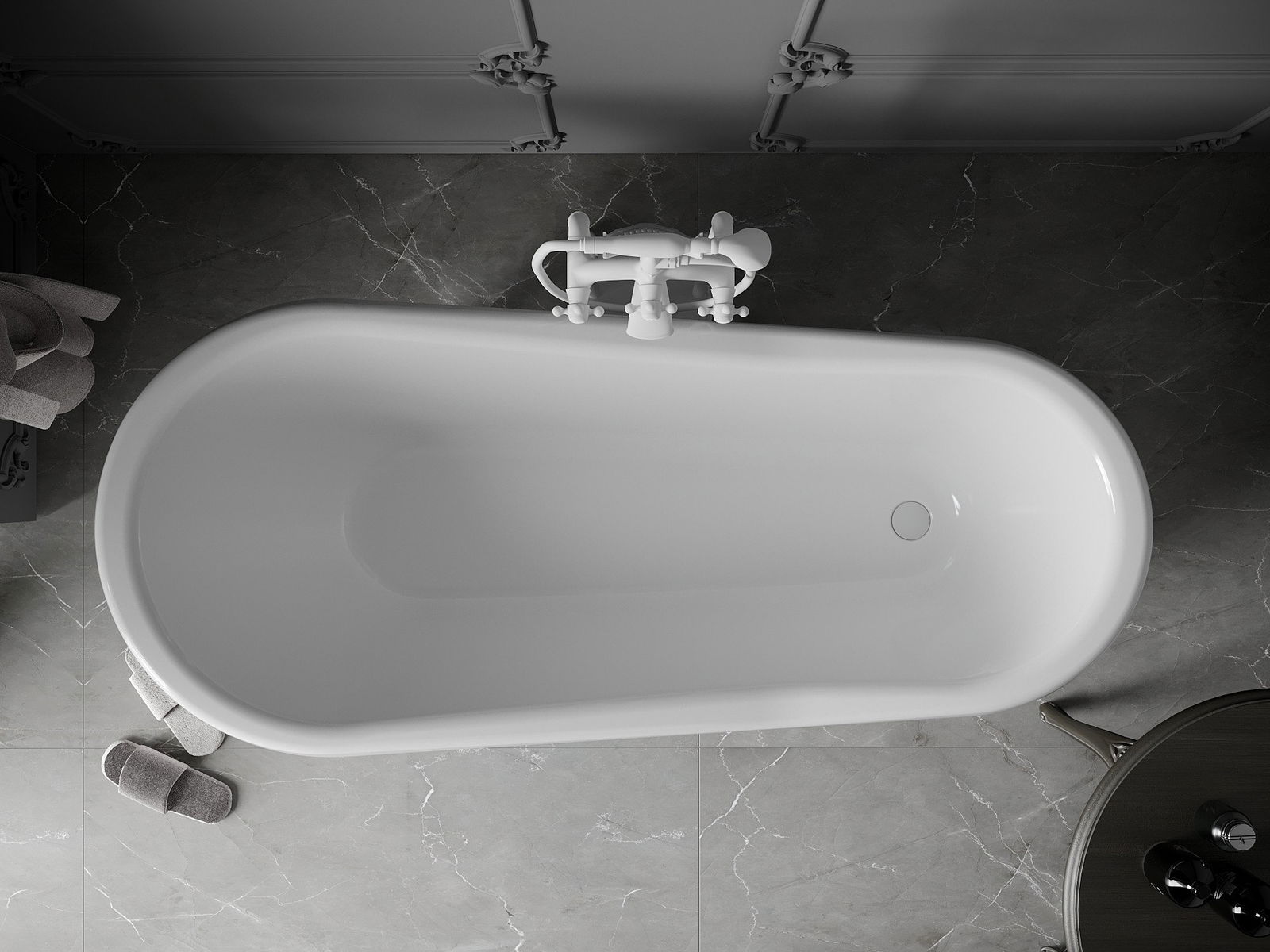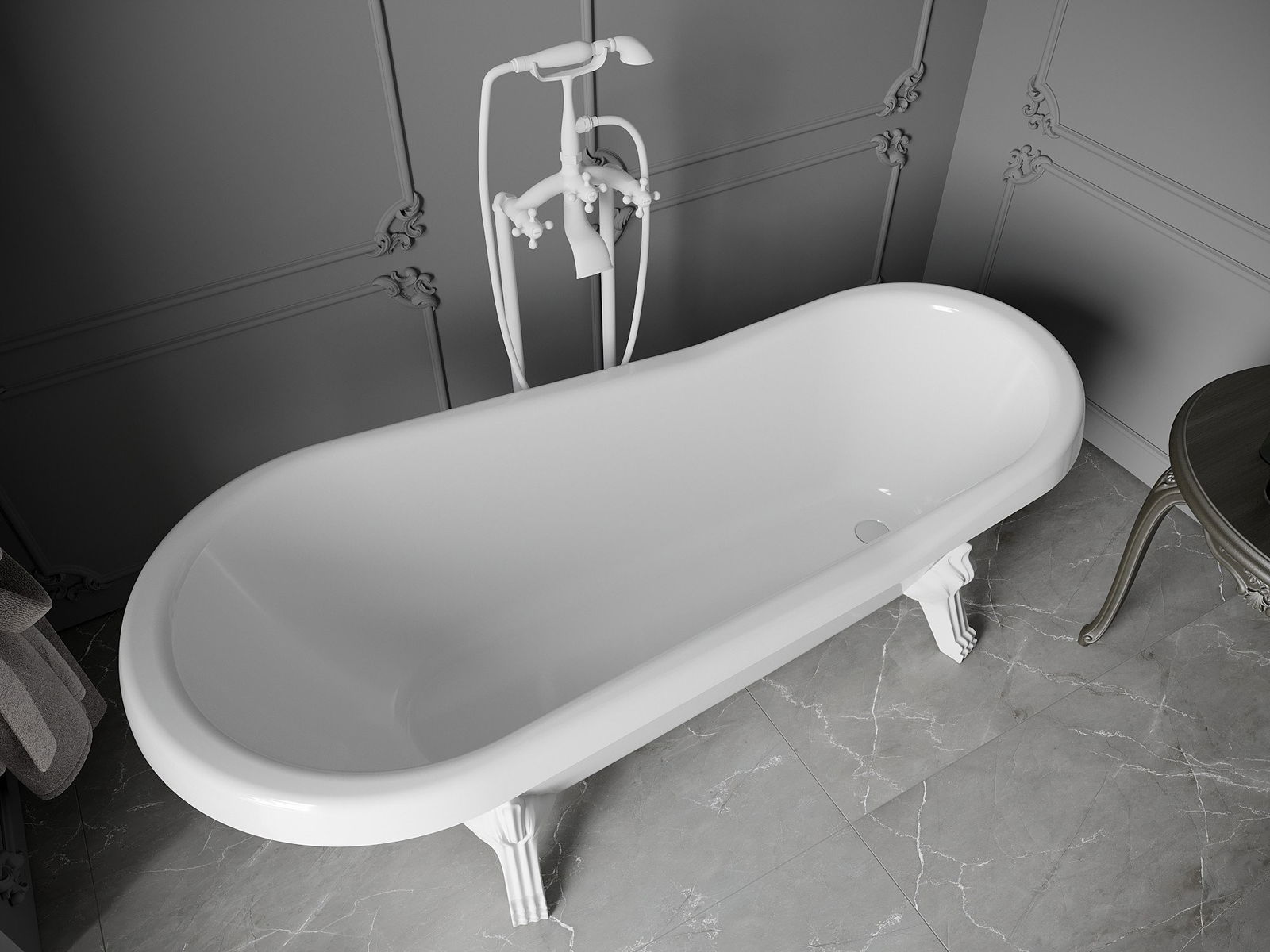 La baignoire est équipée de pieds réglables qui permettent de la mettre à niveau, même sur une surface irrégulière. Une solution pratique qui offre une stabilité et une sécurité accrues lors de l'utilisation, ainsi qu'un montage facile.