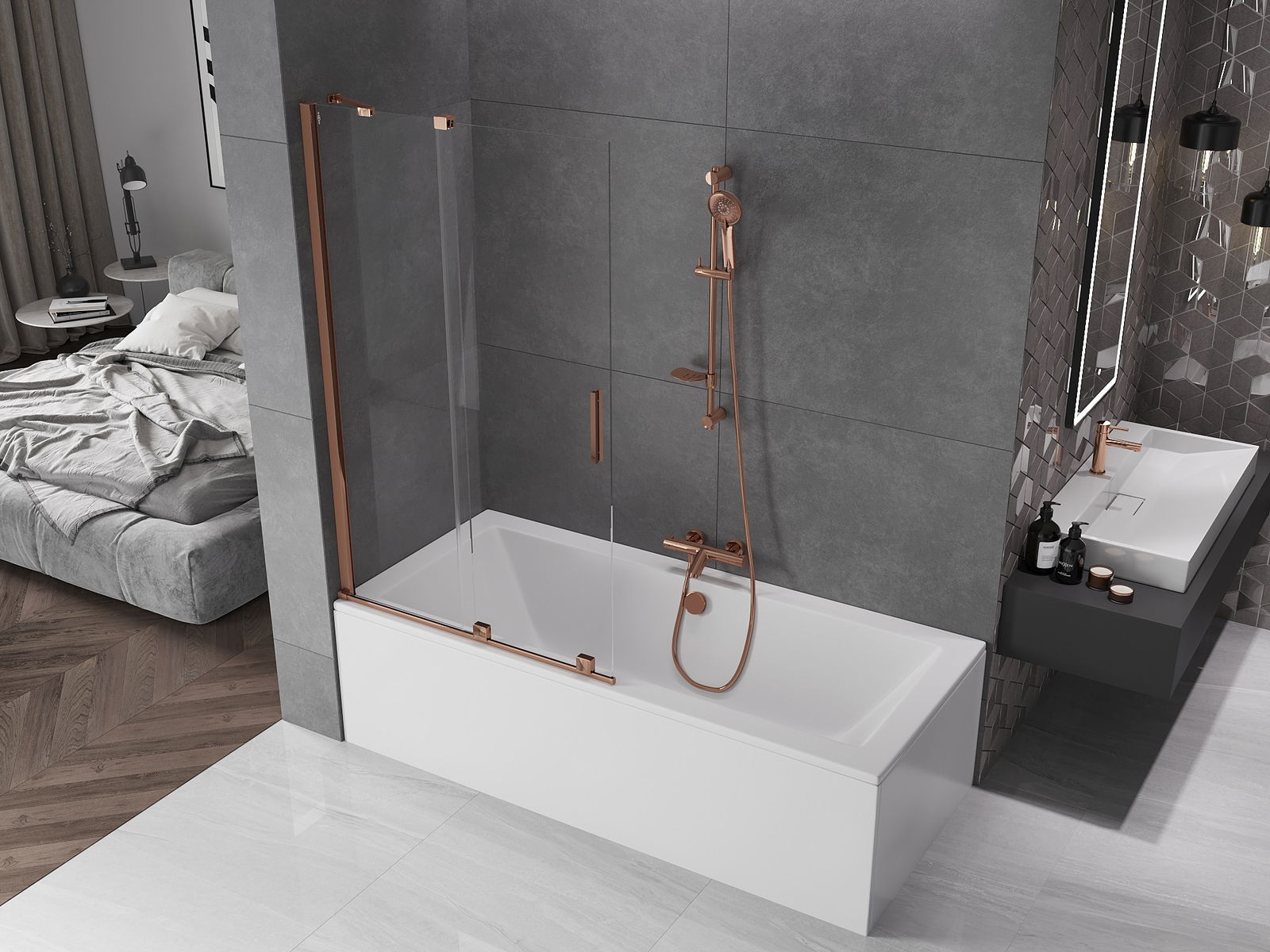 Mexen Velar paroi de baignoire 2 volets coulissants 100 x 150 cm, transparent, or rose - 896-100-000-01-60