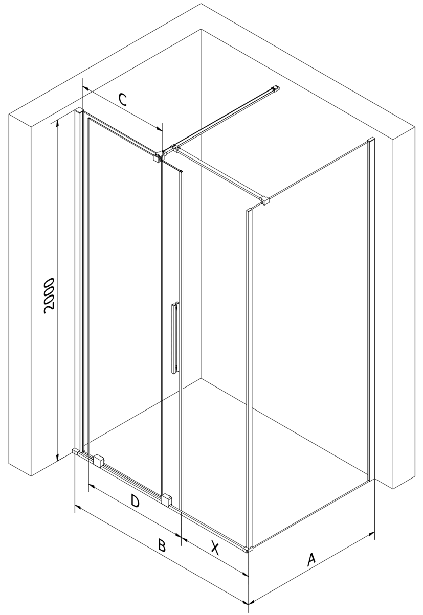 Taille: 110x110 cm (porte 110 cm, paroi 110 cm)