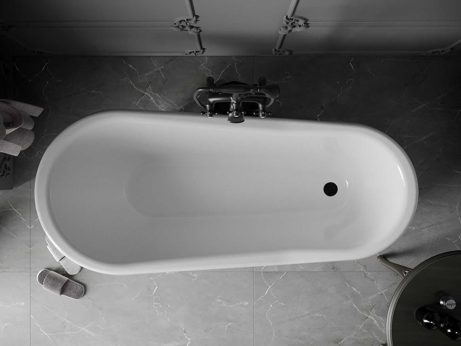 La baignoire est équipée de pieds réglables qui permettent de la mettre à niveau, même sur une surface irrégulière. Une solution pratique qui offre une stabilité et une sécurité accrues lors de l'utilisation, ainsi qu'un montage facile.