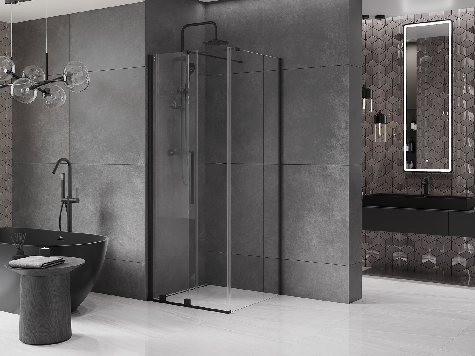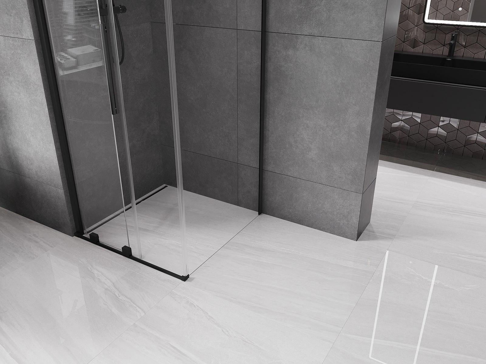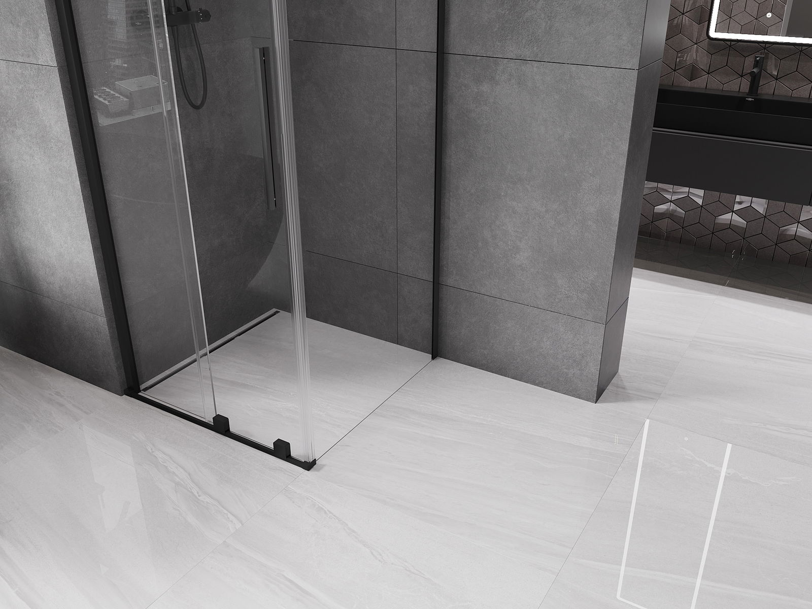 La poignée pratique et confortable est en acier inoxydable. Sa forme élégante, associée à une finition assortie à la couleur des profilés, confère à l'ensemble un style moderne et élégant, soulignant l'esthétique de chaque salle de bains.