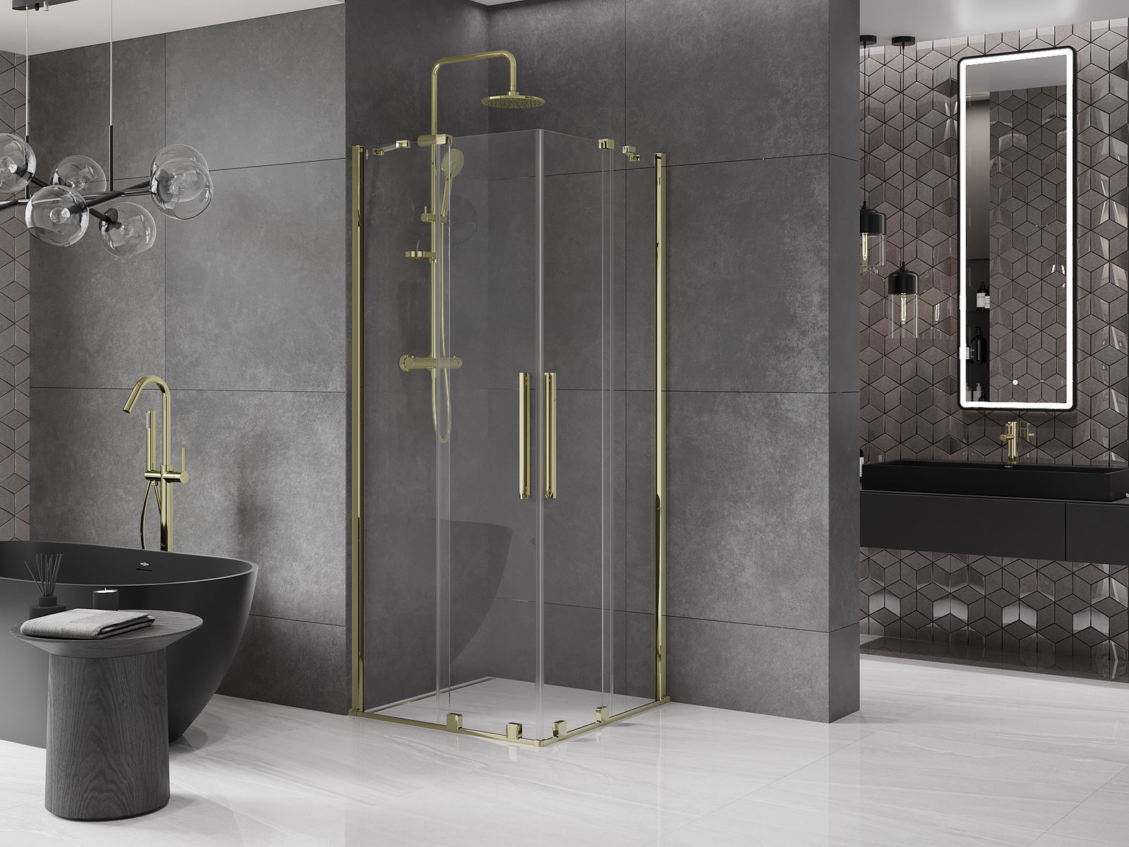 Mexen Velar Duo cabine de douche coulissante 80 x 80 cm, transparente, or - 871-080-080-02-50