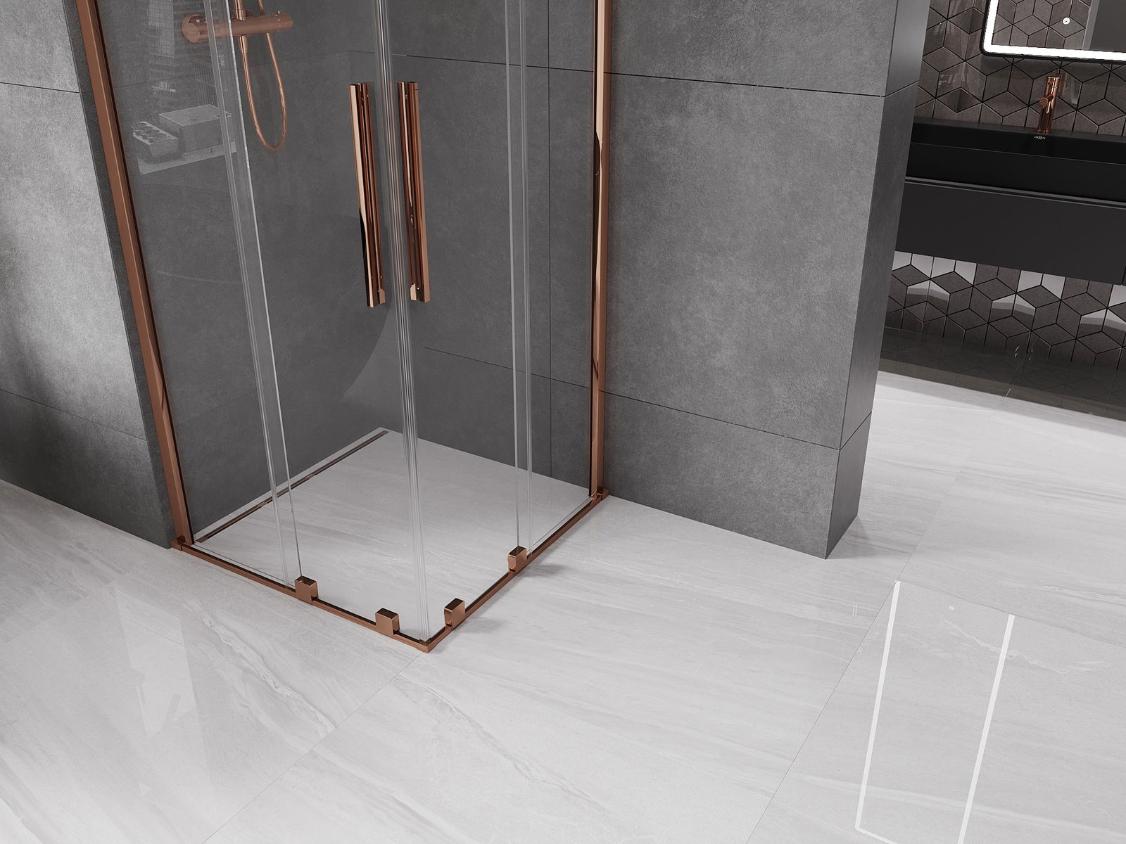 Mexen Velar Duo cabine de douche coulissante 100 x 100 cm, transparent, or rose - 871-100-100-02-60