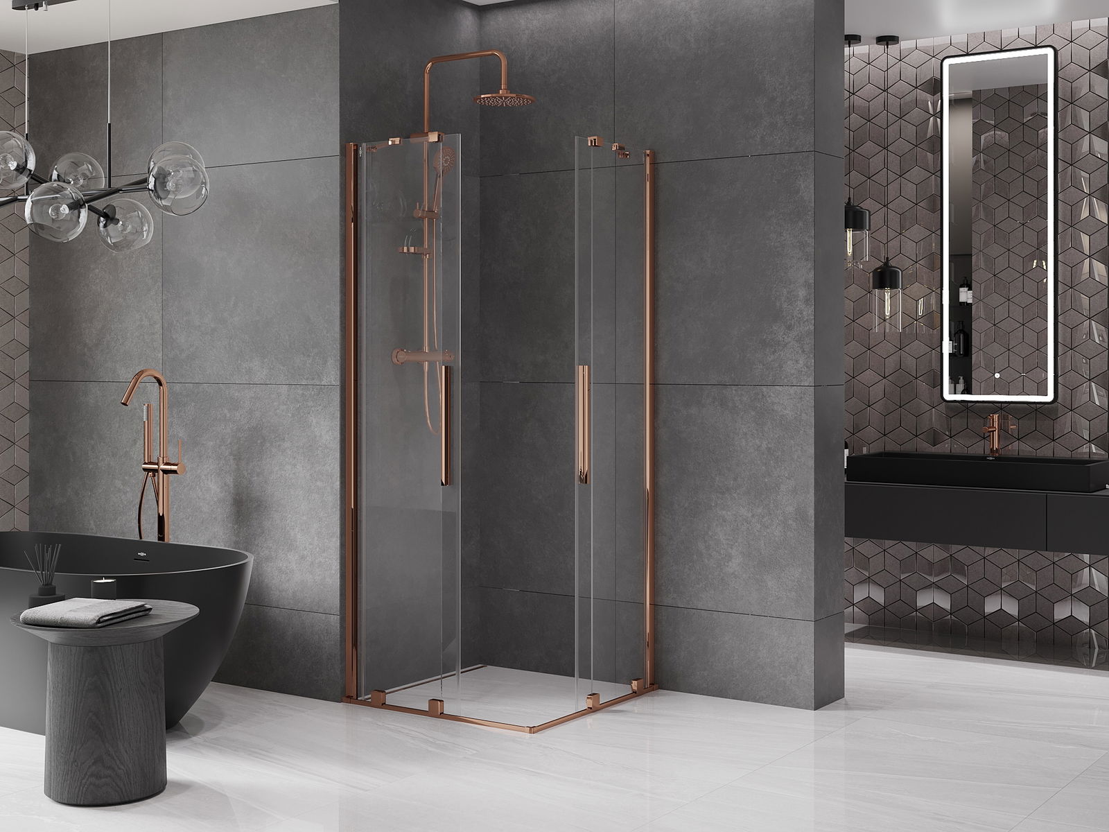 La poignée pratique et confortable est en acier inoxydable. Sa forme élégante, associée à une finition assortie à la couleur des profilés, confère à l'ensemble un style moderne et élégant, soulignant l'esthétique de chaque salle de bains.