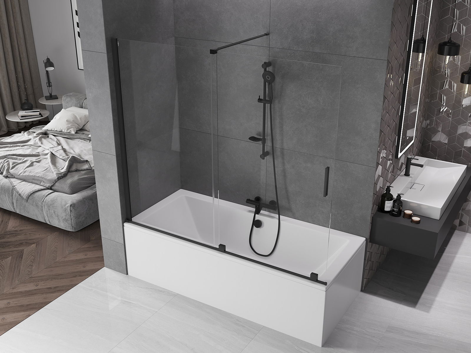 Mexen Velar paroi de baignoire à 2 volets coulissants 180 x 150 cm, transparent, noir - 896-180-000-01-70