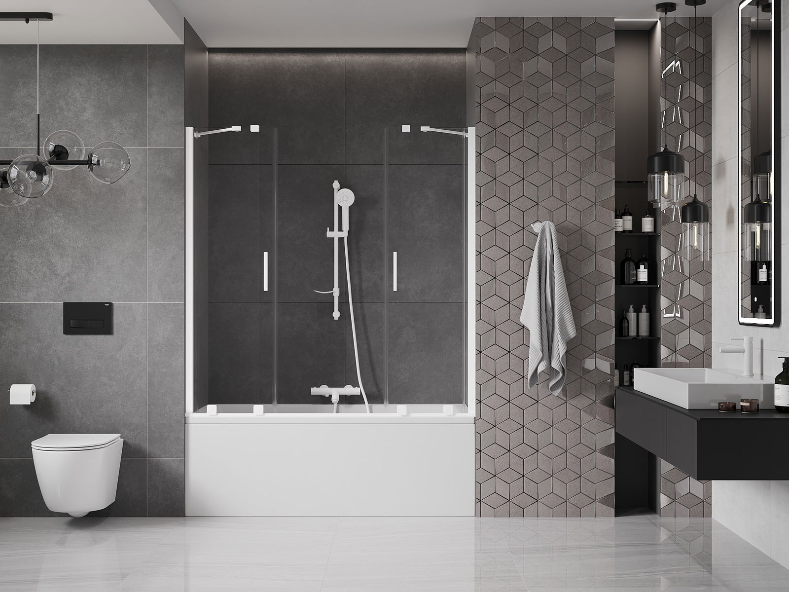 Paroi de baignoire Mexen Velar Duo 2 vantaux coulissants 150 x 150 cm, transparent, blanc - 896-150-000-02-20