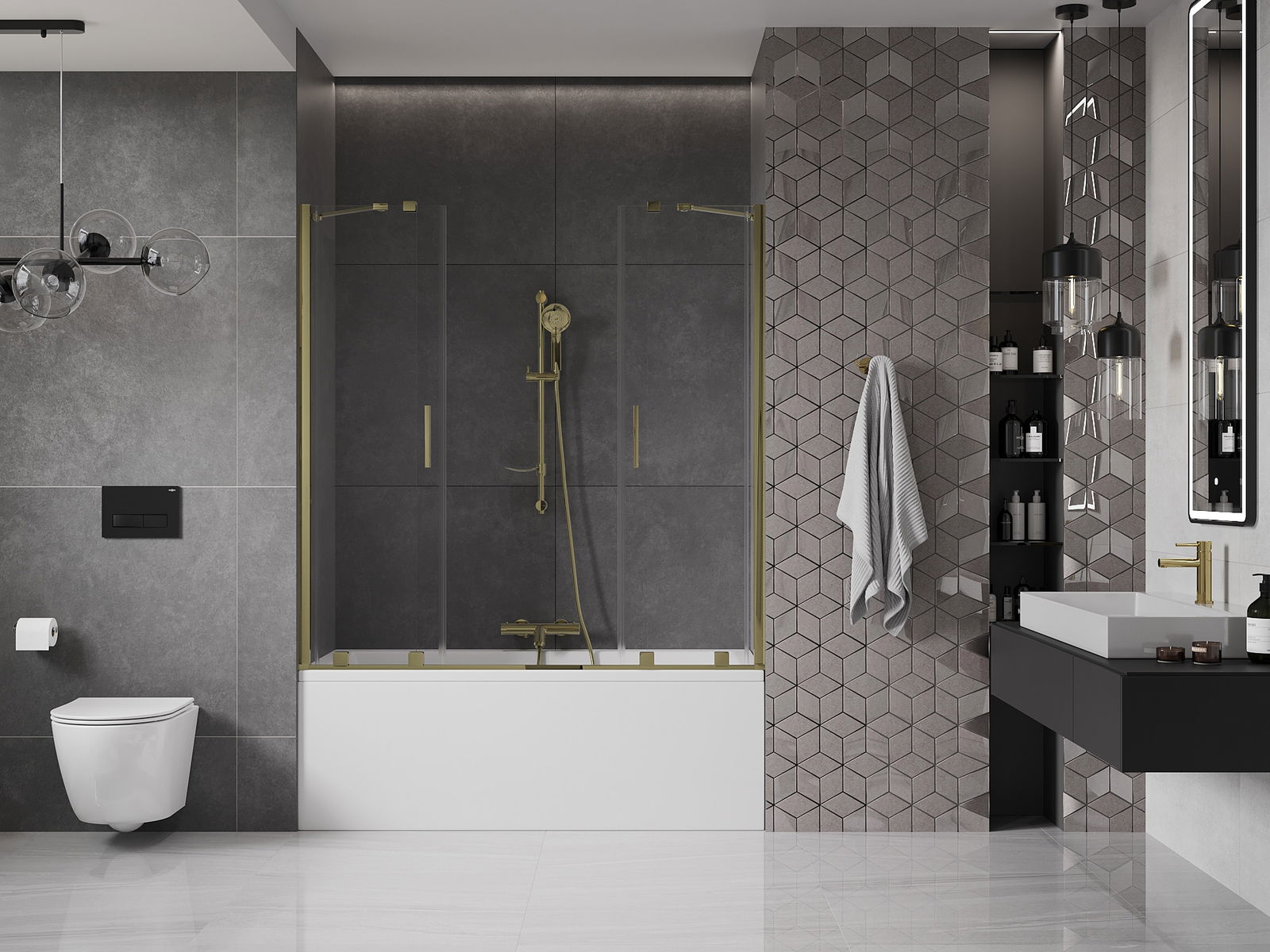 Mexen Velar Duo pare-douche baignoire 2 volets coulissants 160 x 150 cm, transparent, doré - 896-160-000-02-50