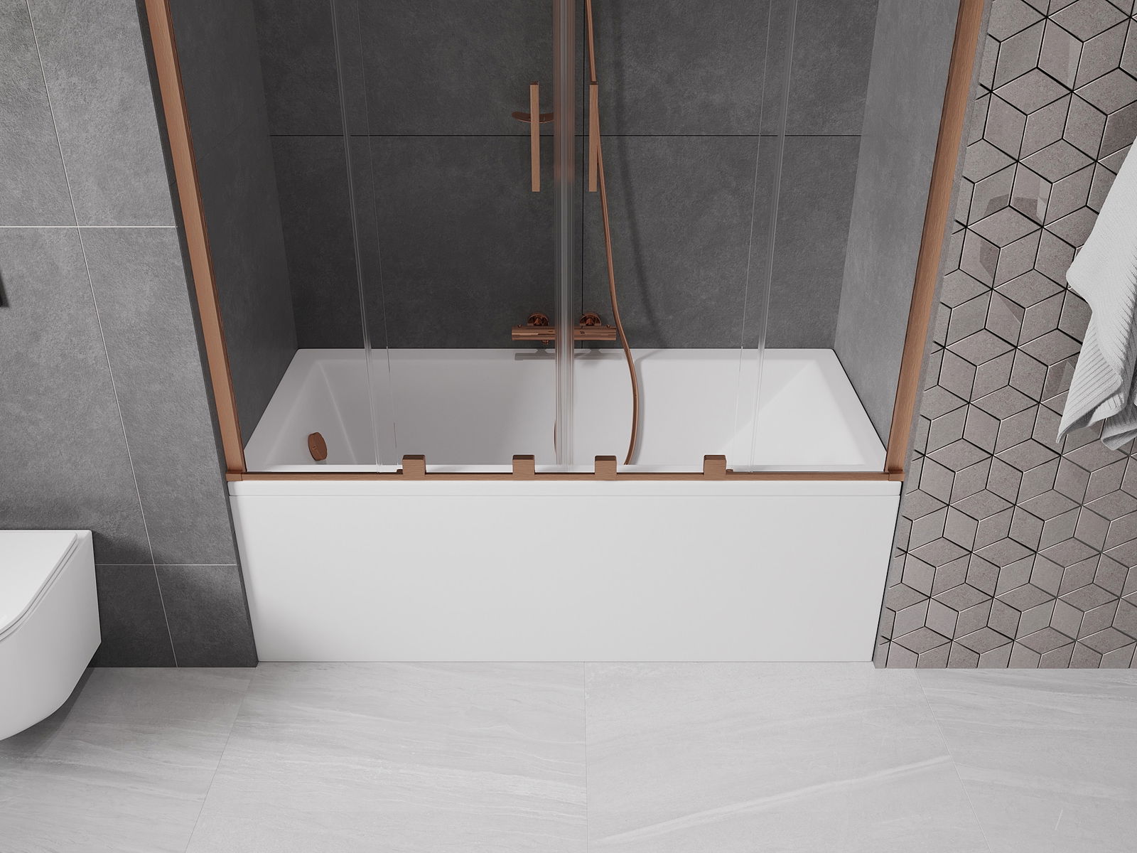 Mexen Velar Duo paroi de baignoire à deux panneaux coulissants 140 x 150 cm, transparent, cuivre brossé - 896-140-000-02-65