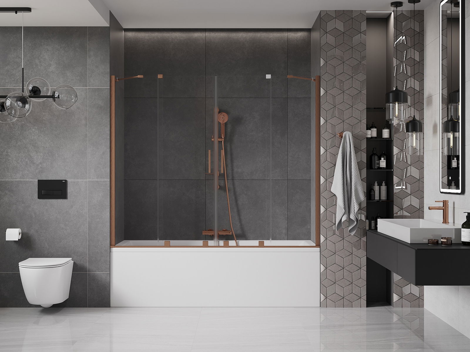 Mexen Velar Duo écran de baignoire à 2 volets coulissants 180 x 150 cm, transparent, cuivre brossé - 896-180-000-02-65