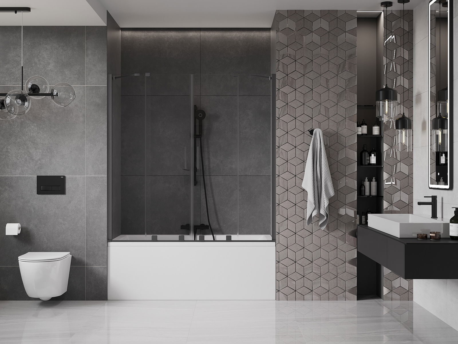 Protection efficace contre les éclaboussures d'eau pendant le bain. Le pare-baignoire est doté de joints qui s'adaptent parfaitement à la vitre et au rebord de la baignoire. Solution fonctionnelle garantissant sécurité et nettoyage facile.