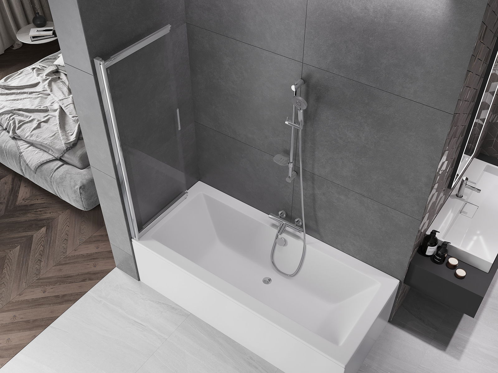 Protection efficace contre les éclaboussures d'eau pendant le bain. Le pare-baignoire est doté de joints qui s'adaptent parfaitement à la vitre et au rebord de la baignoire. Solution fonctionnelle garantissant sécurité et nettoyage facile.