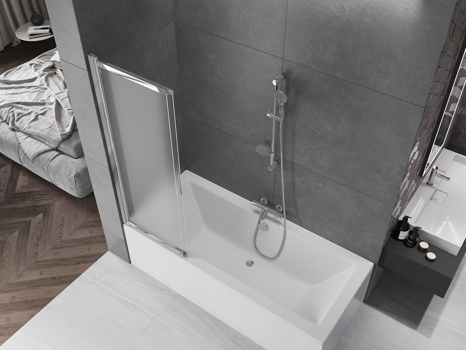Protection efficace contre les éclaboussures d'eau pendant le bain. Le pare-baignoire est doté de joints qui s'adaptent parfaitement à la vitre et au rebord de la baignoire. Solution fonctionnelle garantissant sécurité et nettoyage facile.