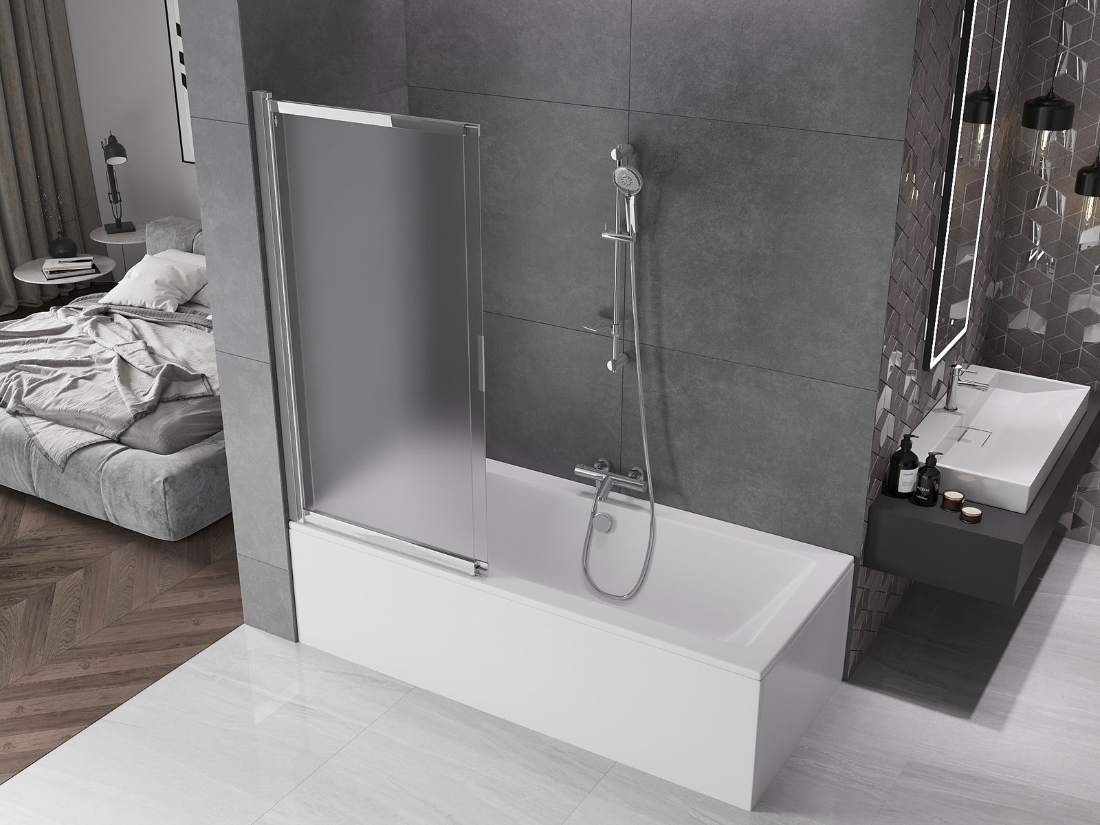 Protection efficace contre les éclaboussures d'eau pendant le bain. Le pare-baignoire est doté de joints qui s'adaptent parfaitement à la vitre et au rebord de la baignoire. Solution fonctionnelle garantissant sécurité et nettoyage facile.