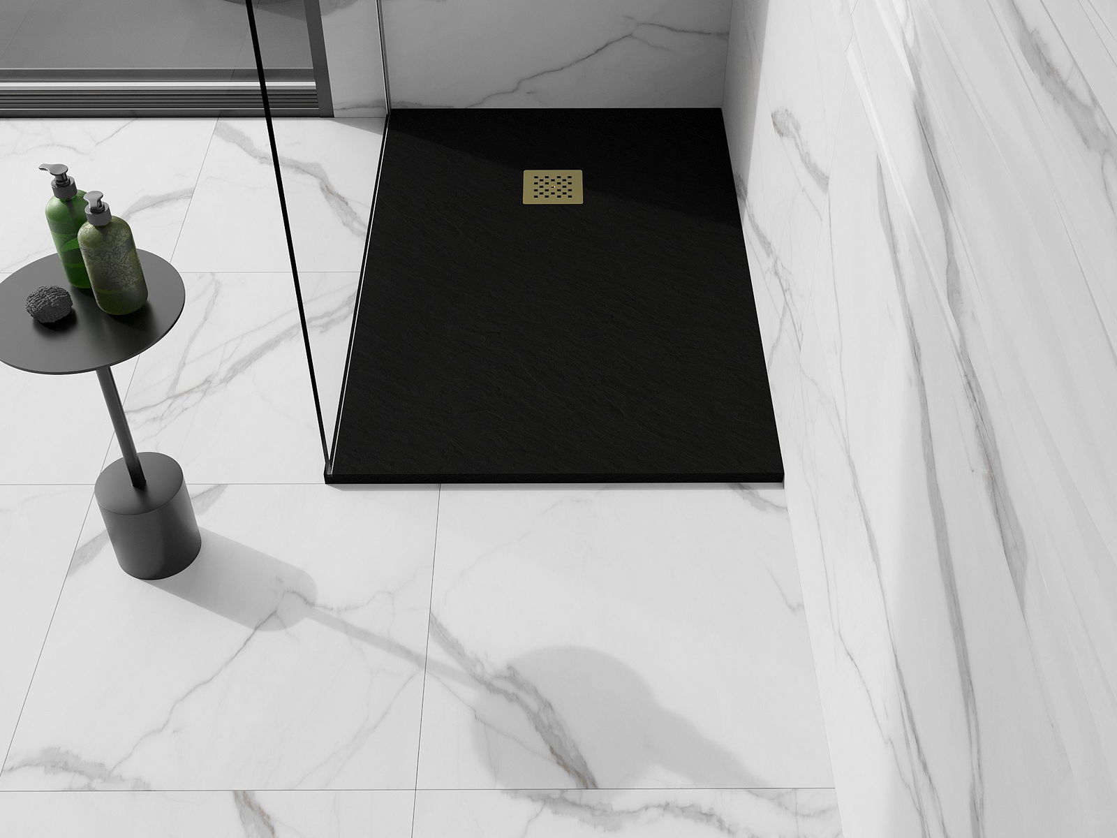 Mexen Stone+ receveur de douche en composite rectangulaire 90 x 70 cm, noir, cache doré - 44707090-G