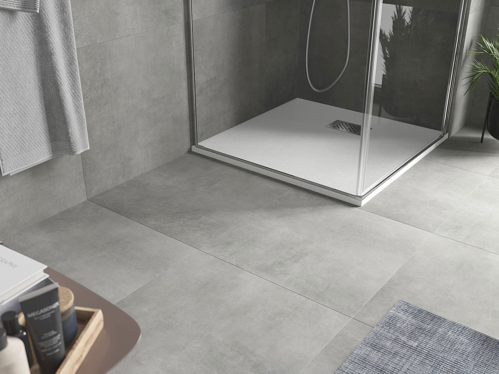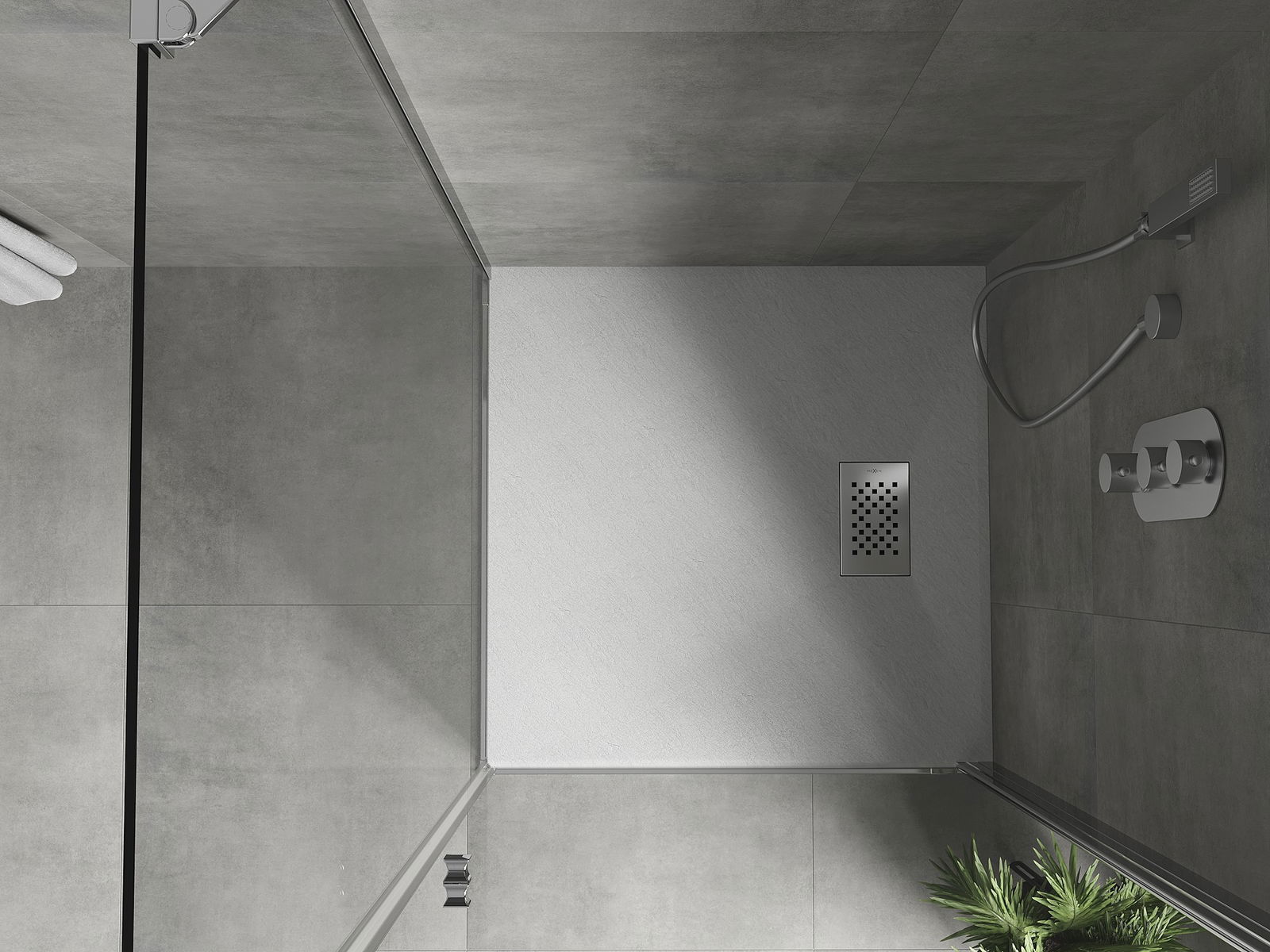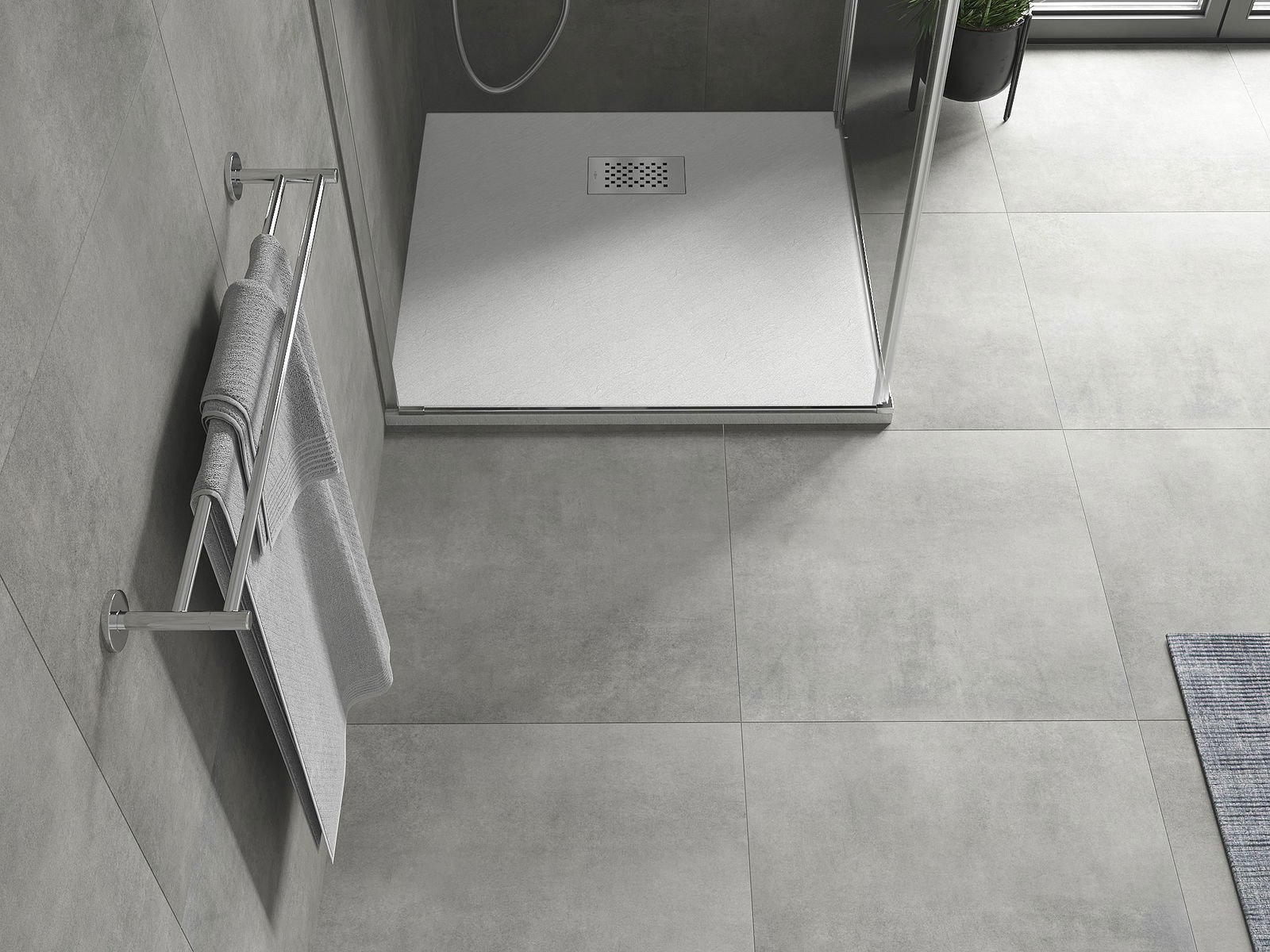 La surface du receveur de douche rappelle par sa structure la pierre. Elle constitue une combinaison exceptionnelle d'un aspect naturel et d'un aménagement intérieur moderne. Elle ajoute du caractère, souligne l'esthétique et l'élégance de la décoration de la salle de bains et séduit par sa forme.