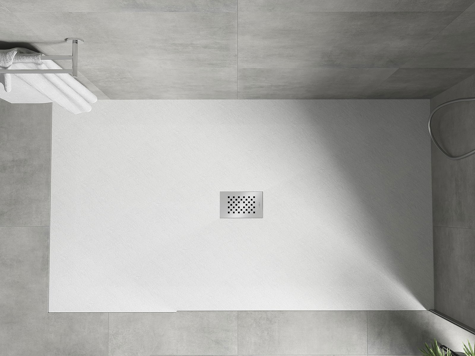 La surface du receveur de douche rappelle par sa structure la pierre. Elle constitue une combinaison exceptionnelle d'un aspect naturel et d'un aménagement intérieur moderne. Elle ajoute du caractère, souligne l'esthétique et l'élégance de la décoration de la salle de bains et séduit par sa forme.