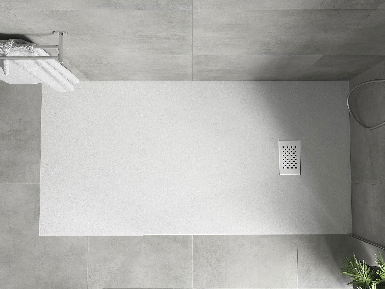 La surface du receveur de douche rappelle par sa structure la pierre. Elle constitue une combinaison exceptionnelle d'un aspect naturel et d'un aménagement intérieur moderne. Elle ajoute du caractère, souligne l'esthétique et l'élégance de la décoration de la salle de bains et séduit par sa forme.