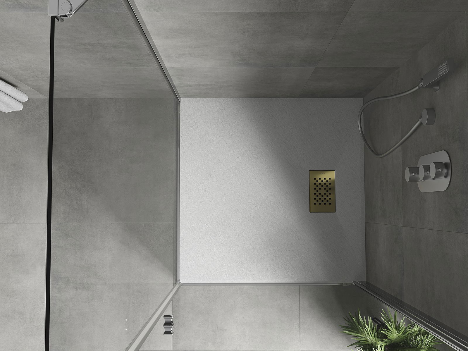 Mexen Hugo receveur de douche carré SMC 70 x 70 cm, blanc, cache doré - 42107070-G