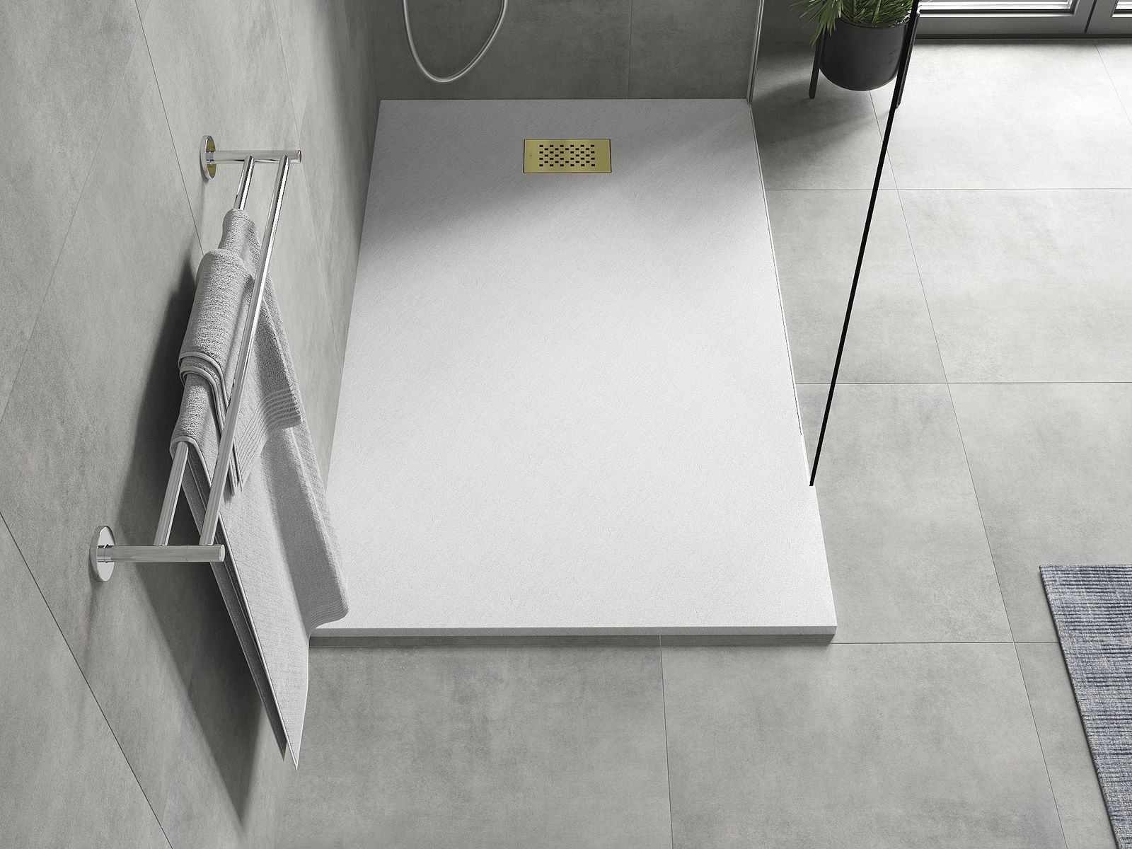 Mexen Hugo receveur rectangulaire SMC 160 x 80 cm, blanc, cache doré - 42108016-G