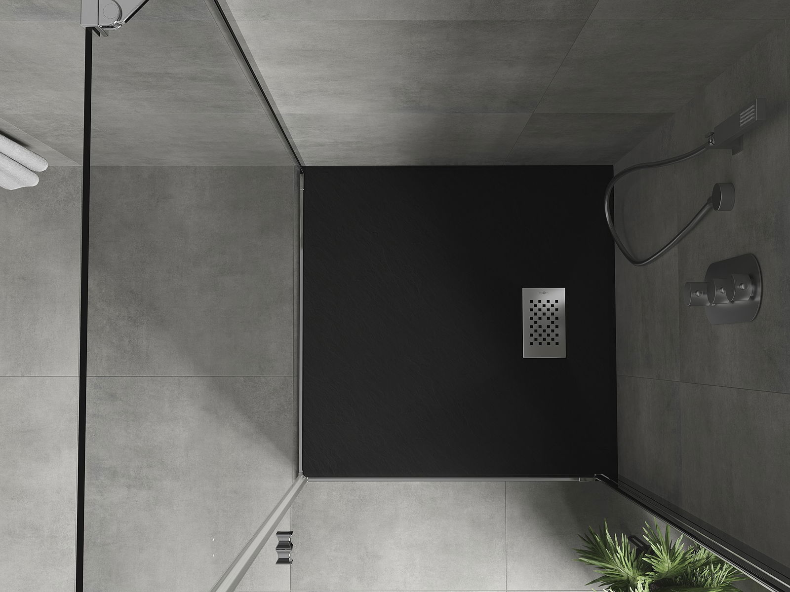 Mexen Hugo receveur de douche carré SMC 90 x 90 cm, noir, cache inox - 42709090-X