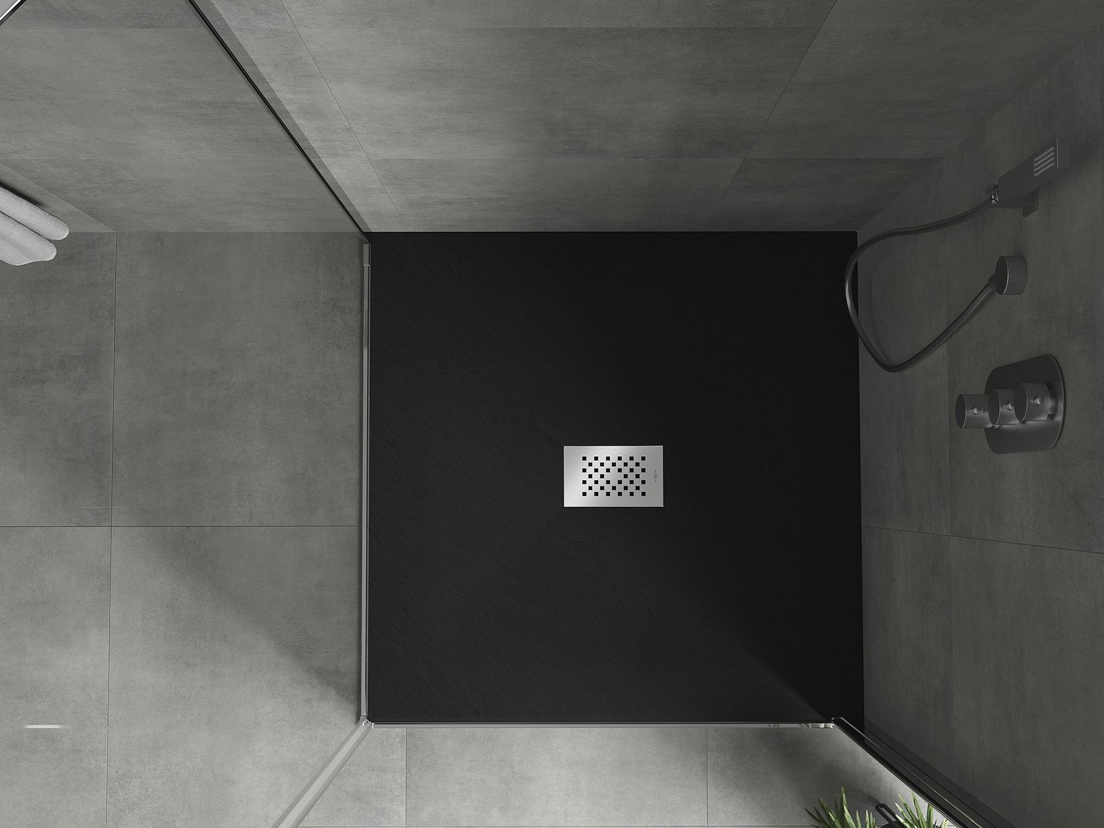 Bac de douche carrée Mexen Hugo SMC 100 x 100 cm, noir, cache inox - 42701010-X