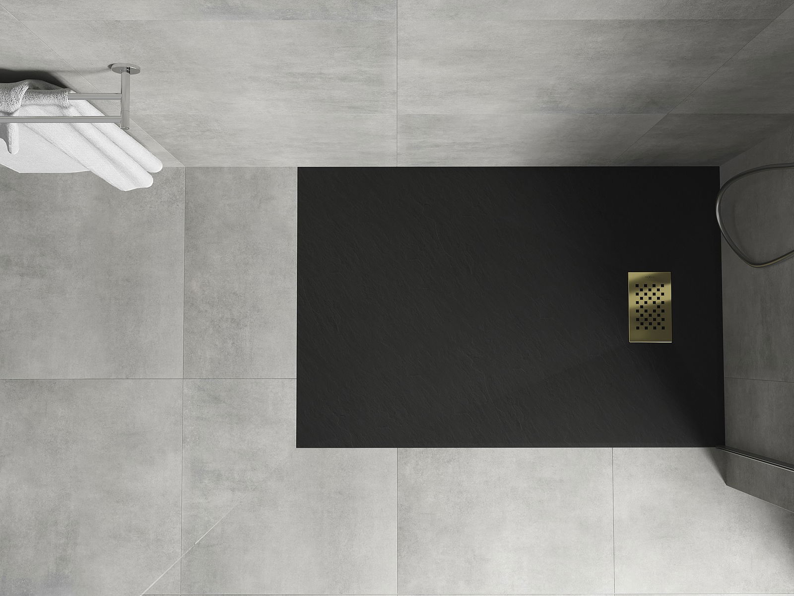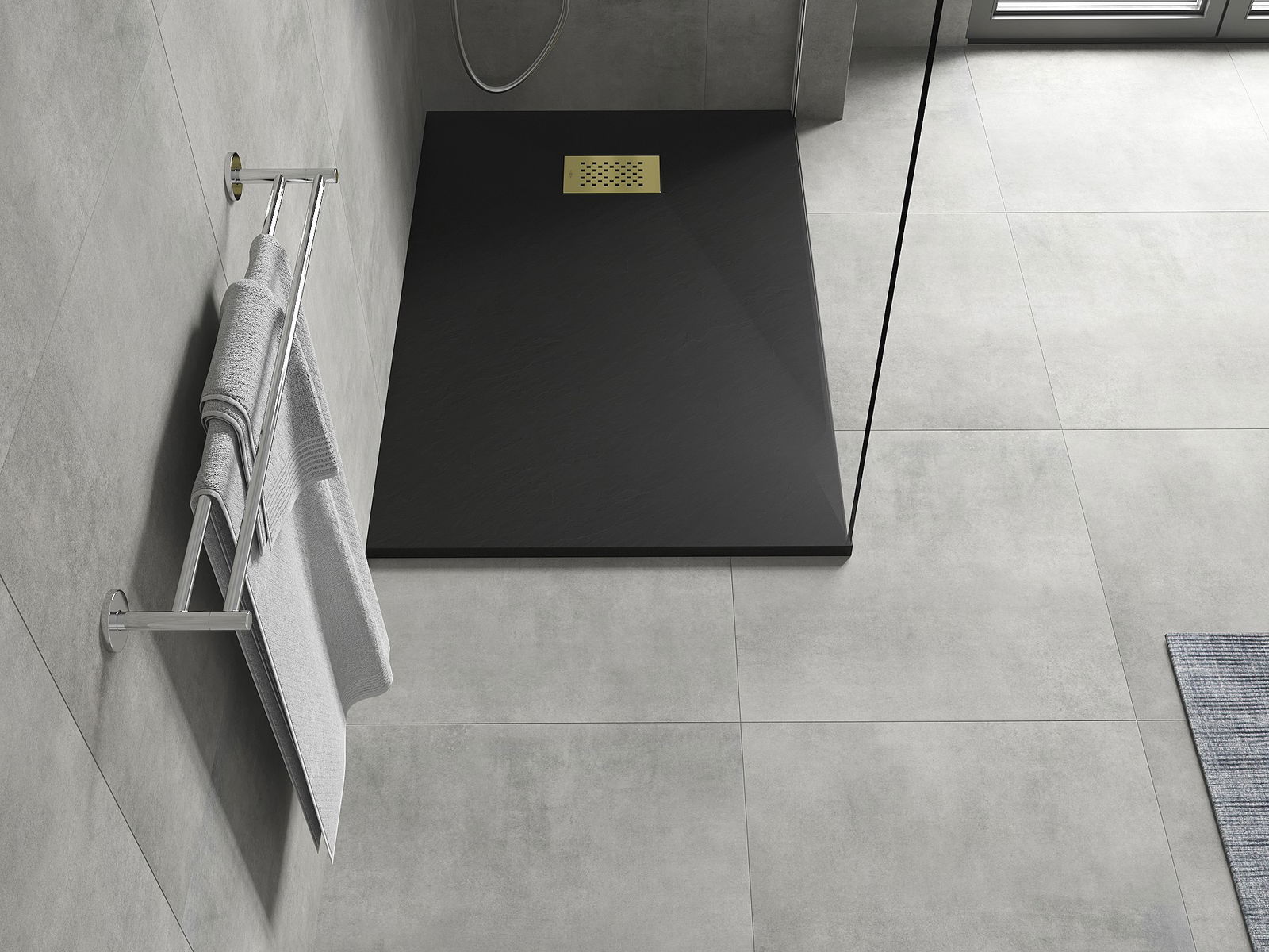 La surface du receveur de douche évoque la pierre. C'est une combinaison unique d'aspect naturel et de design intérieur moderne. Il ajoute du caractère, souligne l'esthétique et l'élégance de la salle de bains et séduit par sa forme.