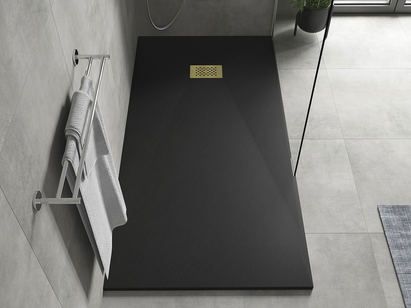 Mexen Hugo receveur de douche rectangulaire SMC 180 x 80 cm, noir, cache doré - 42708018-G
