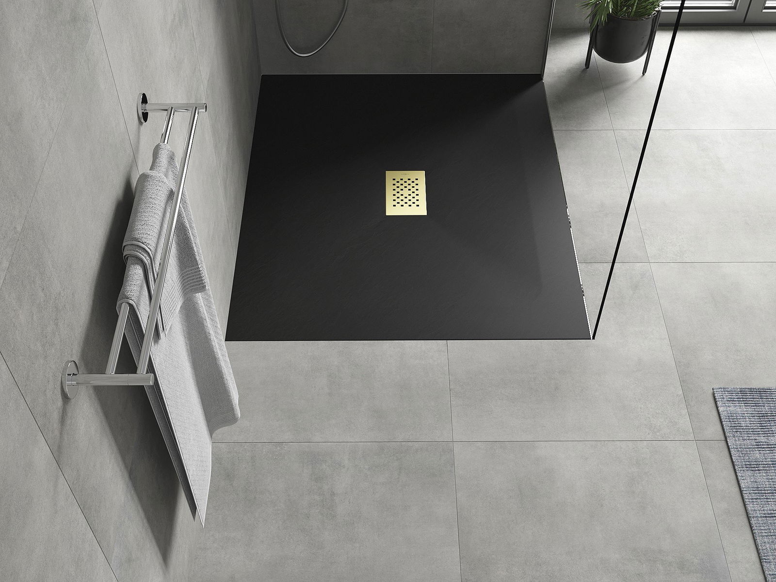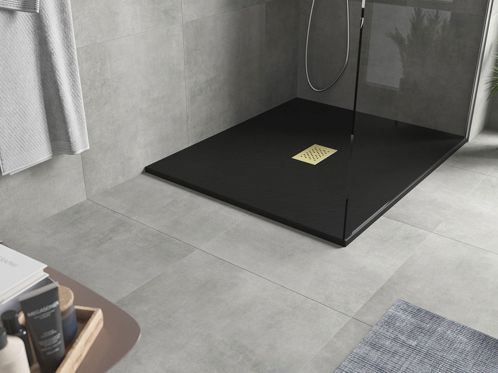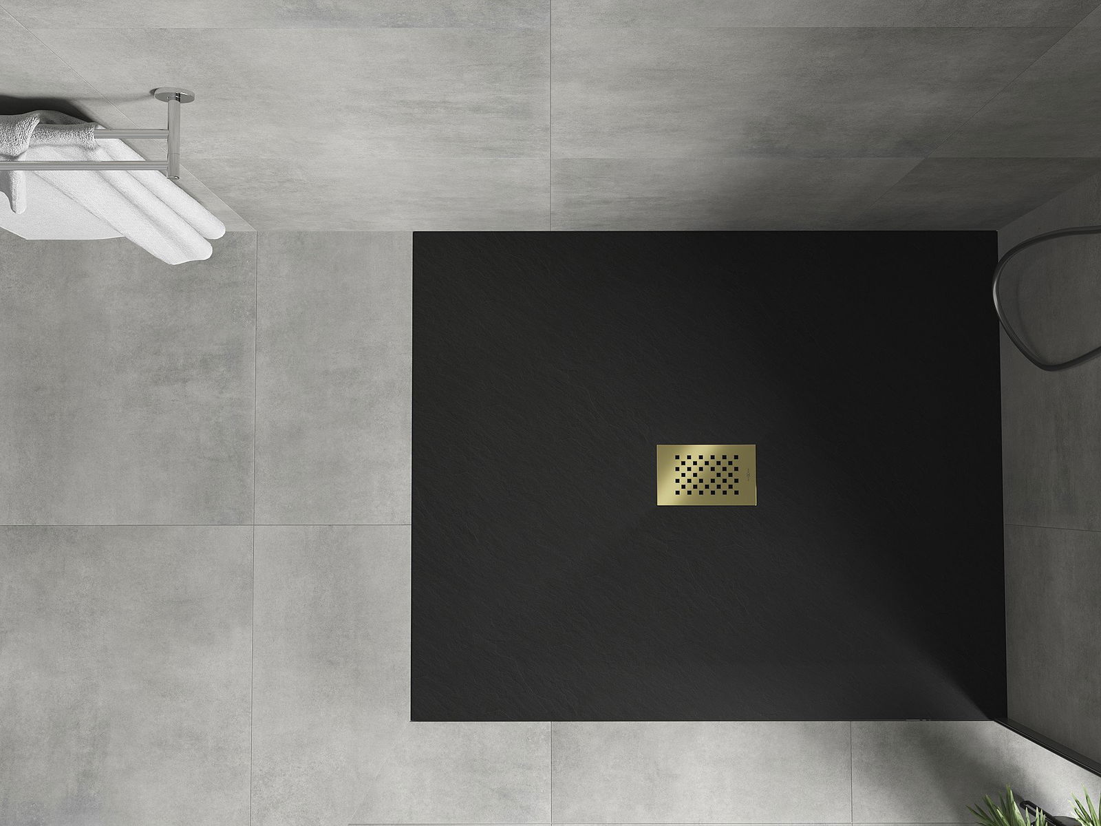 Mexen Hugo receveur de douche rectangulaire SMC 140 x 100 cm, noir, cache doré - 42701014-G