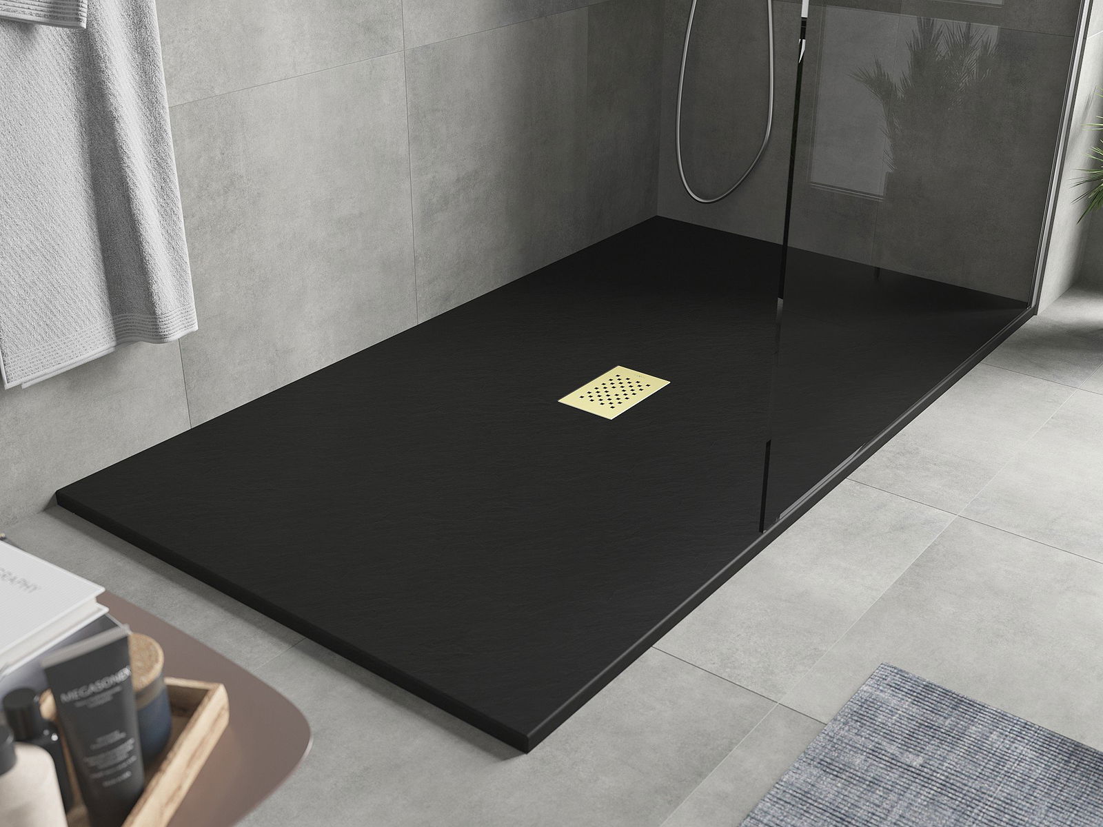 Mexen Hugo receveur de douche rectangulaire SMC 170 x 100 cm, noir, cache doré - 42701017-G