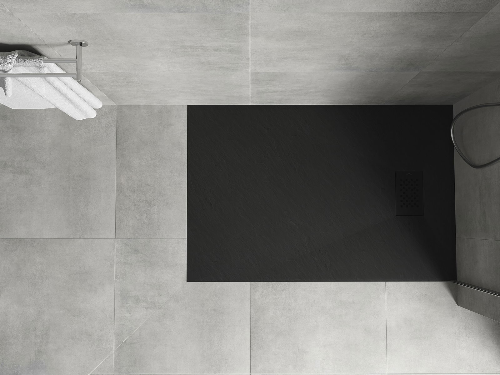 La surface du receveur de douche évoque la pierre. C'est une combinaison unique d'aspect naturel et de design intérieur moderne. Il ajoute du caractère, souligne l'esthétique et l'élégance de la salle de bains et séduit par sa forme.
