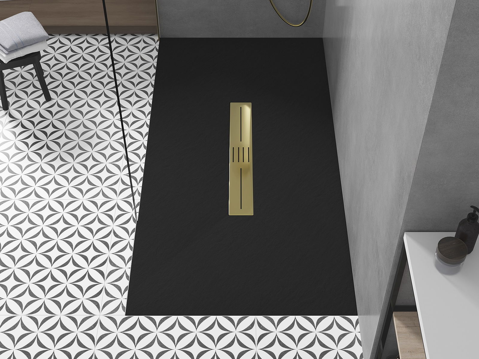 Mexen Toro receveur de douche rectangulaire SMC 160 x 70 cm, noir, cache doré - 43707016-G