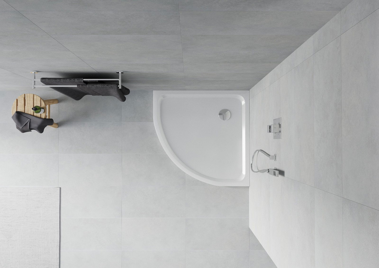 Receveur de douche demi-circulaire slim 90 x 90 cm, blanc, siphon chromé - 41109090