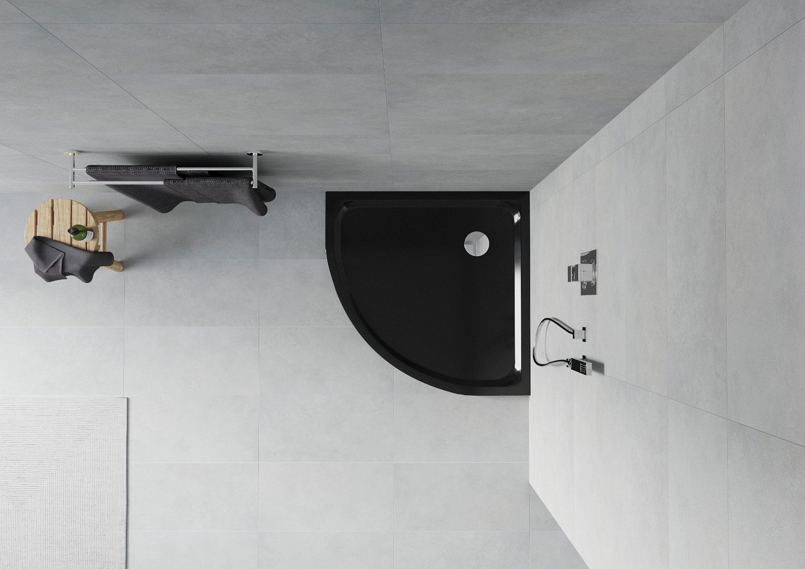 Mexen Flat receveur de douche demi-circulaire mince 80 x 80 cm, noir, siphon chromé - 41708080