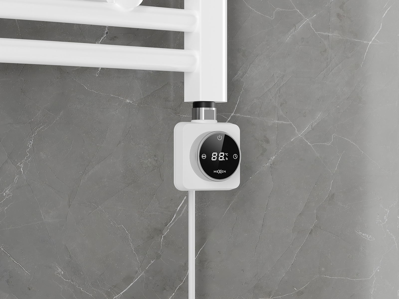 Le radiateur électrique Mexen FA-FD14 300 W, blanc, offre une fonctionnalité et une efficacité exceptionnelles. Avec une longueur totale de 438 mm et un élément chauffant de 349 mm, il assure un chauffage efficace avec une puissance de 300 W. L'appareil fonctionne sur une tension de 230V/50 Hz et dispose d'un câble de raccordement de 1,5 m. Des fonctions supplémentaires, telles que l'affichage LED, la protection contre le fonctionnement "à sec" ainsi que les modes Sensitive, Comfort et ECO, en font une solution polyvalente pour toute salle de bain.