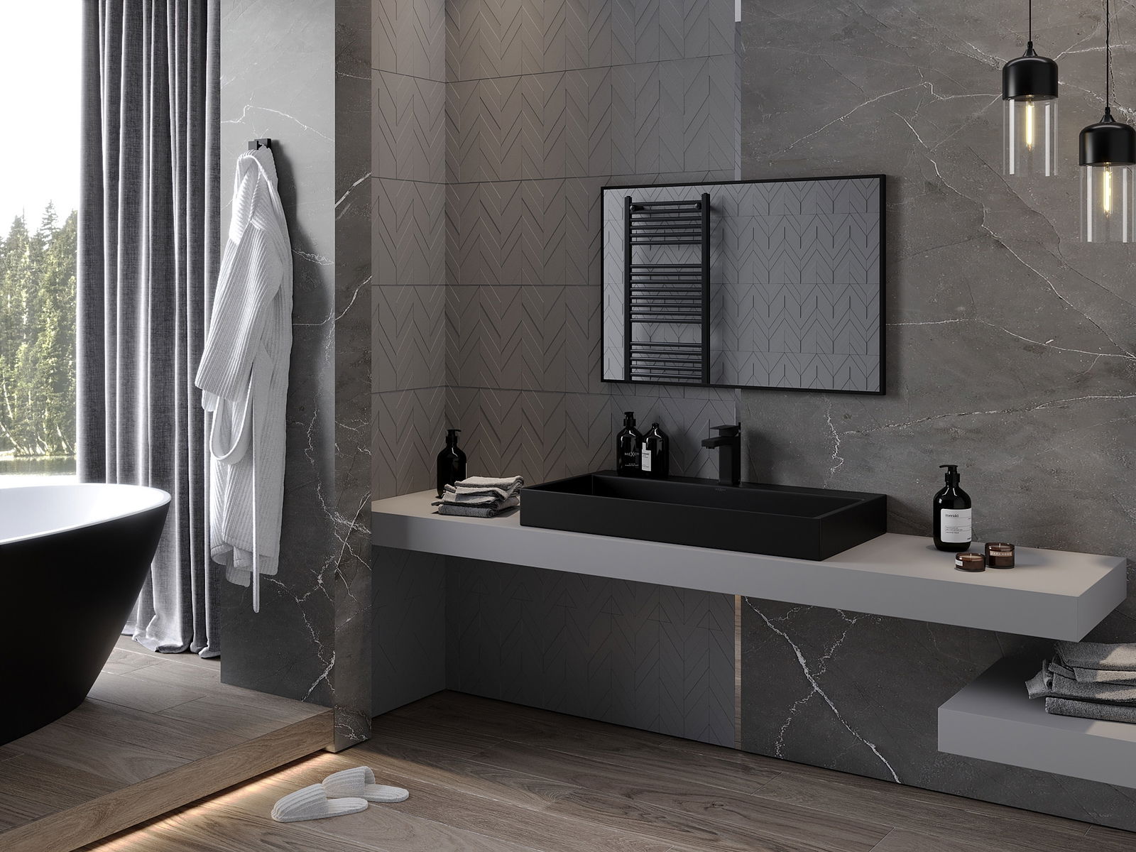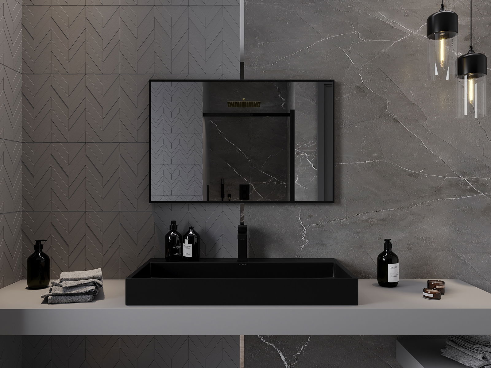 Mexen Loft miroir de salle de bain rectangulaire 90 x 60 cm, cadre noir - 9852-090-060-000-70