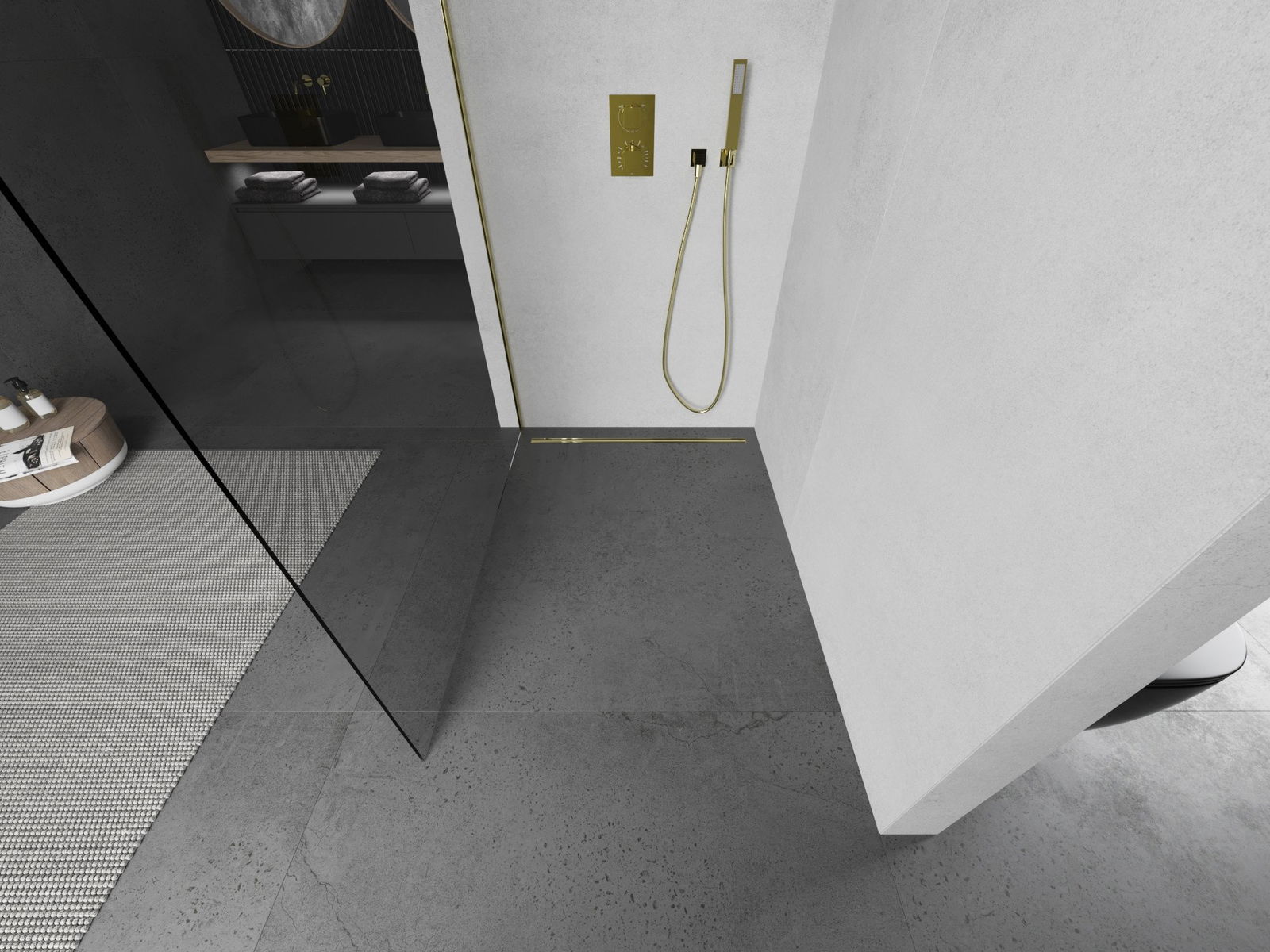 Mexen Kioto paroi de douche Walk-in 60 x 200 cm, transparent 8 mm, or - 800-060-101-50-00
