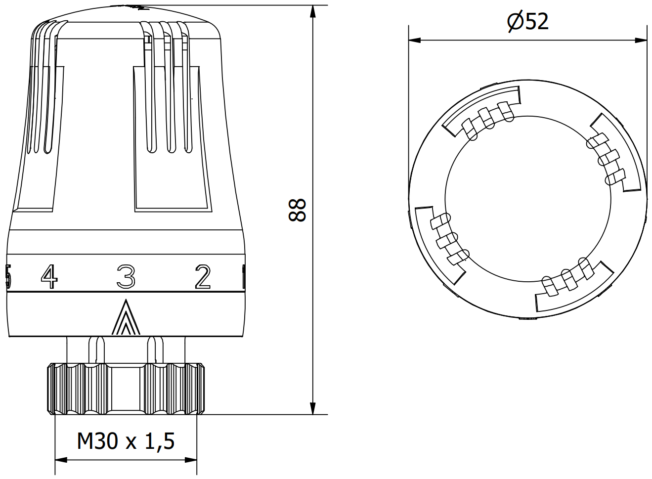 C'est une taille standard de filetage utilisée dans de nombreuses têtes thermostatiques, en particulier dans les appareils utilisés dans les installations de chauffage. Le symbole M30 signifie que le diamètre extérieur du filetage est de 30 mm, et 1,5 mm - le pas du filetage est de 1,5 mm.