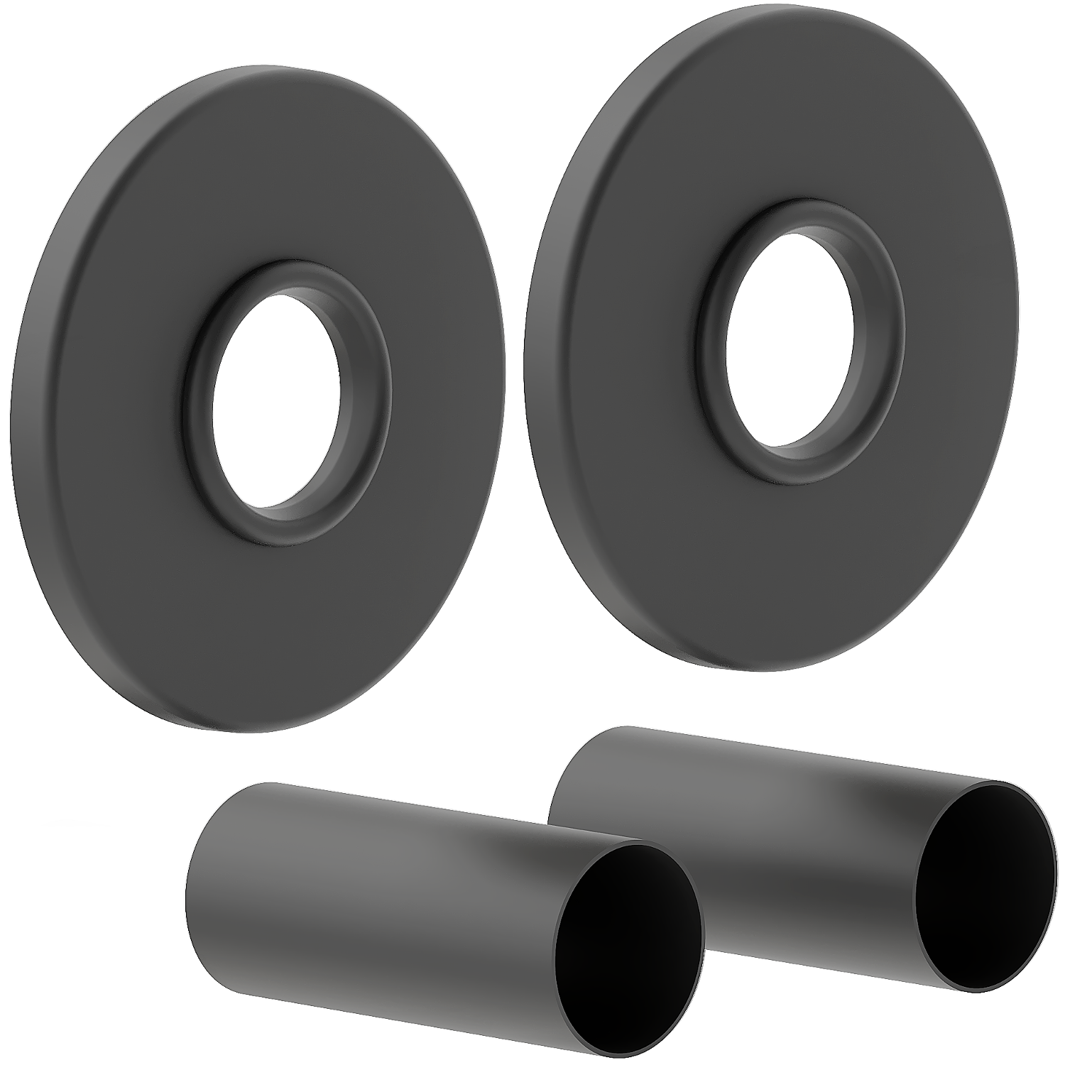 L'ensemble de masquage se compose de deux rosaces simples et de manchons destinés au montage de kits thermostatiques et de vannes de radiateur