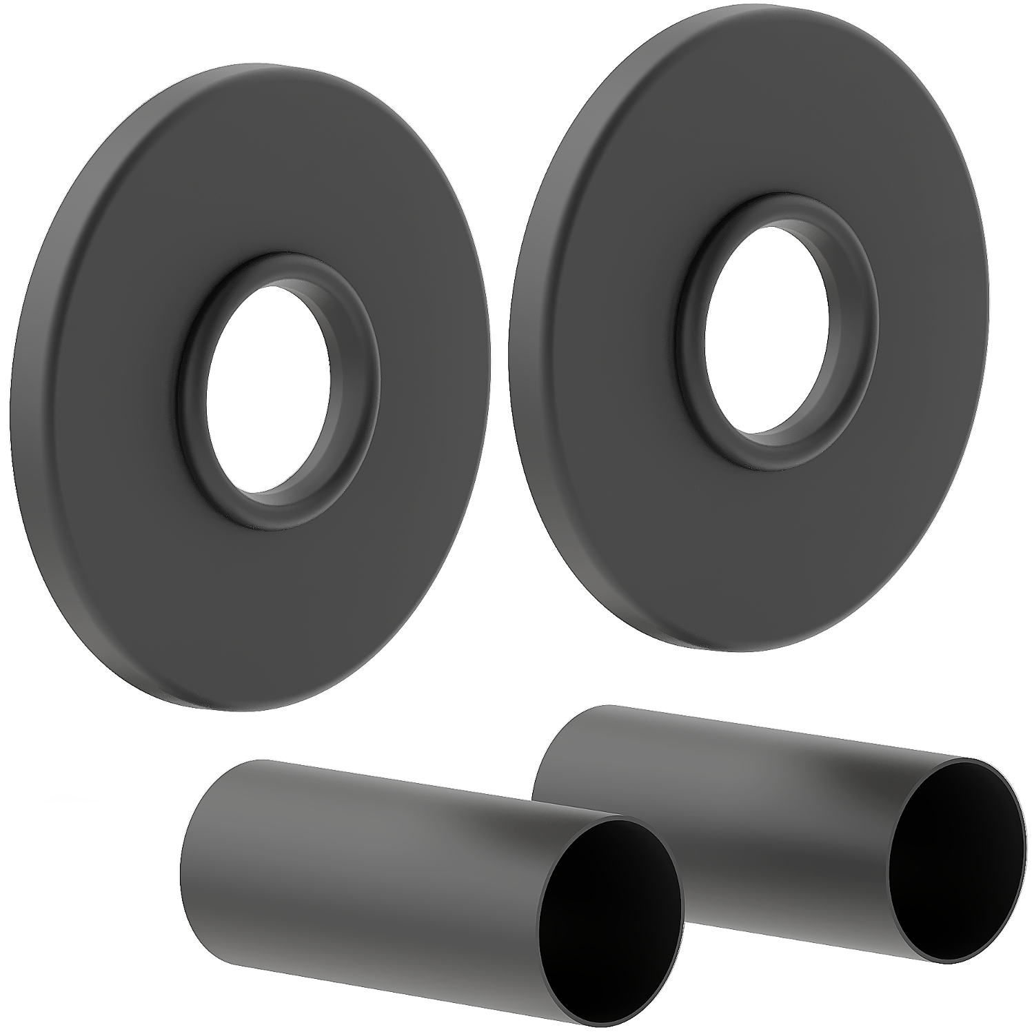 L'ensemble de masquage se compose de deux rosaces simples et de manchons destinés au montage de kits thermostatiques et de vannes de radiateur
