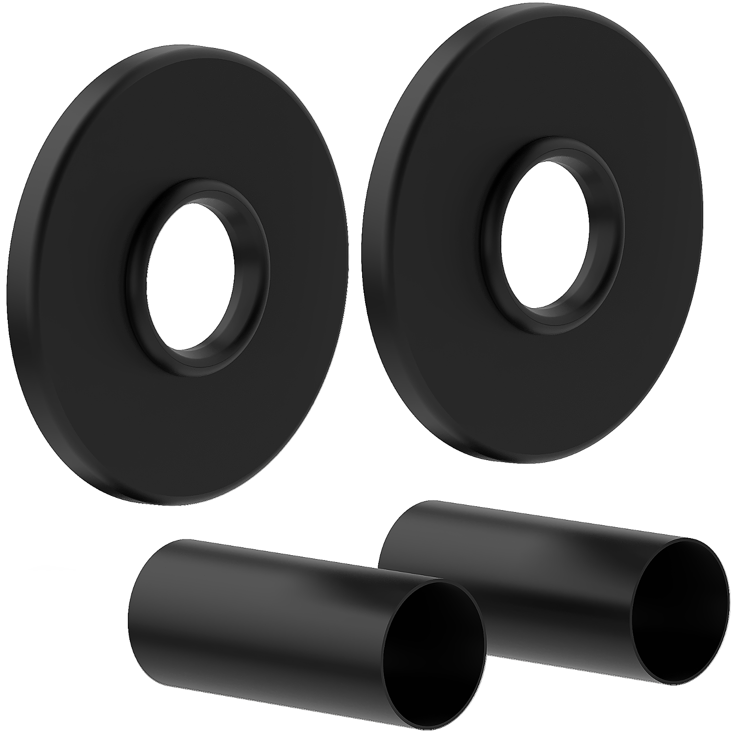 L'ensemble masquant se compose de deux rosaces simples et de manchons destinés au montage des ensembles thermostatiques et des vannes de radiateur