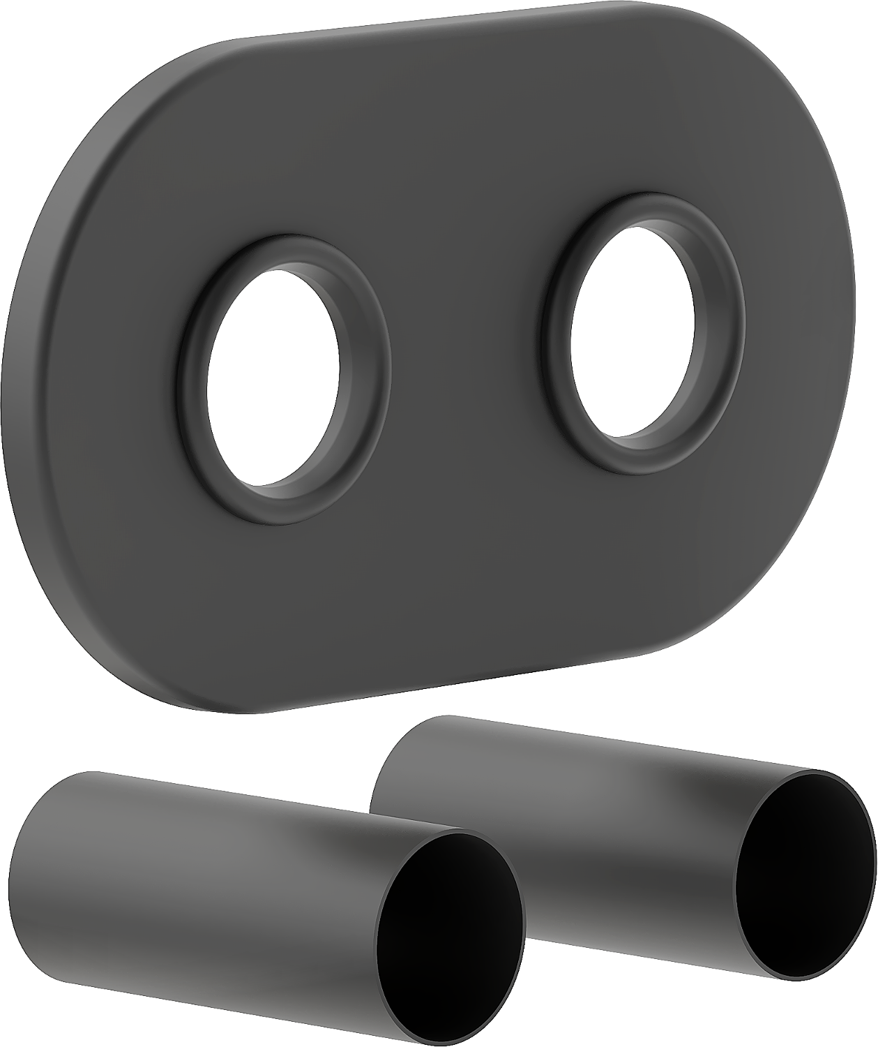 L'ensemble de masquage se compose d'une double rosace et de deux manchons destinés au montage des ensembles thermostatiques et des vannes de radiateur