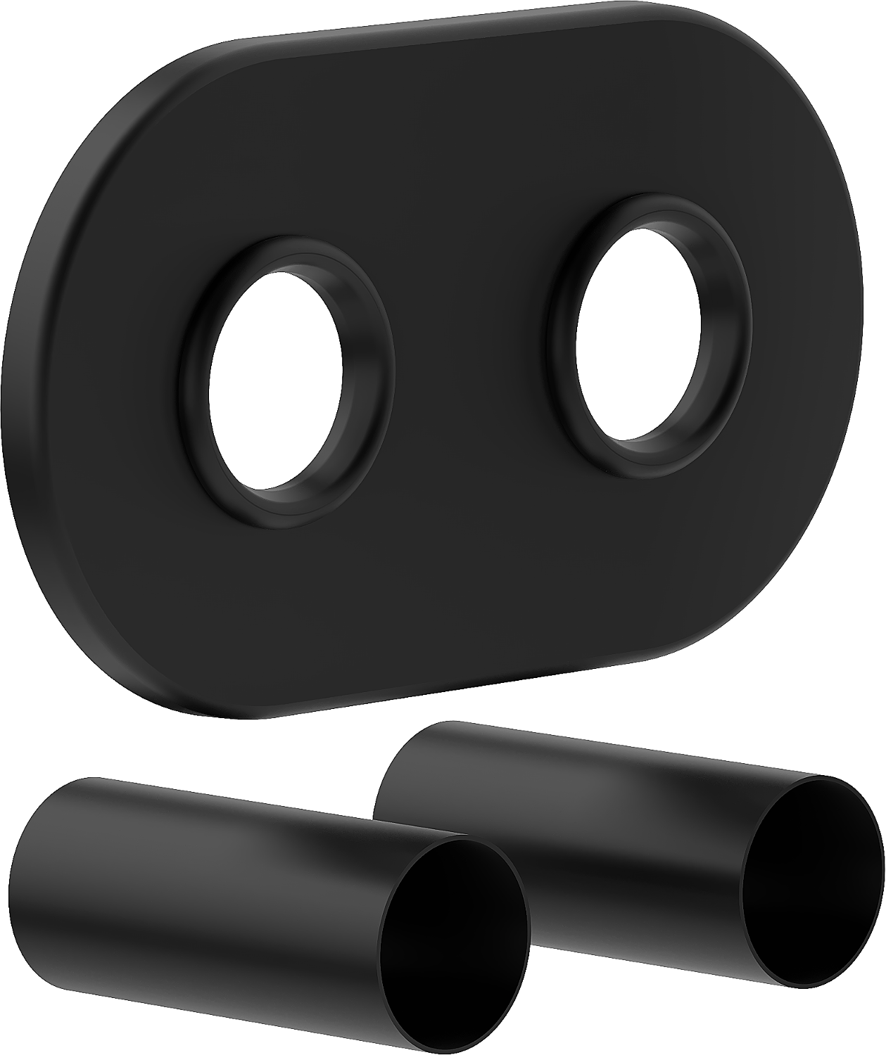 L'ensemble de masquage se compose d'une rosace double et de deux manchons conçus pour le montage d'ensembles thermostatiques et de vannes de radiateur