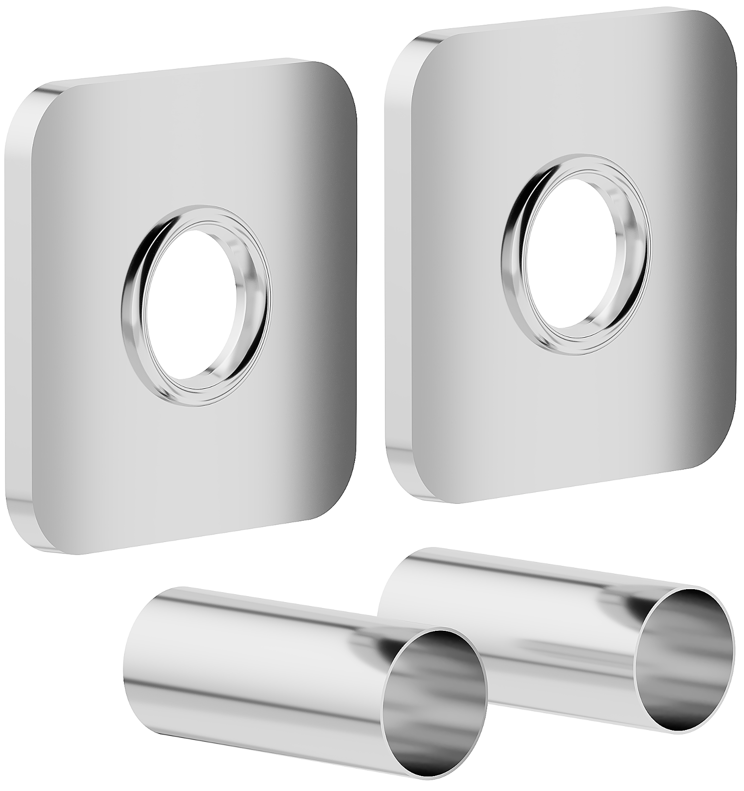 Le kit de masquage se compose de deux rosaces simples et de manchons destinés à l'installation d'ensembles thermostatiques et de vannes de radiateur
