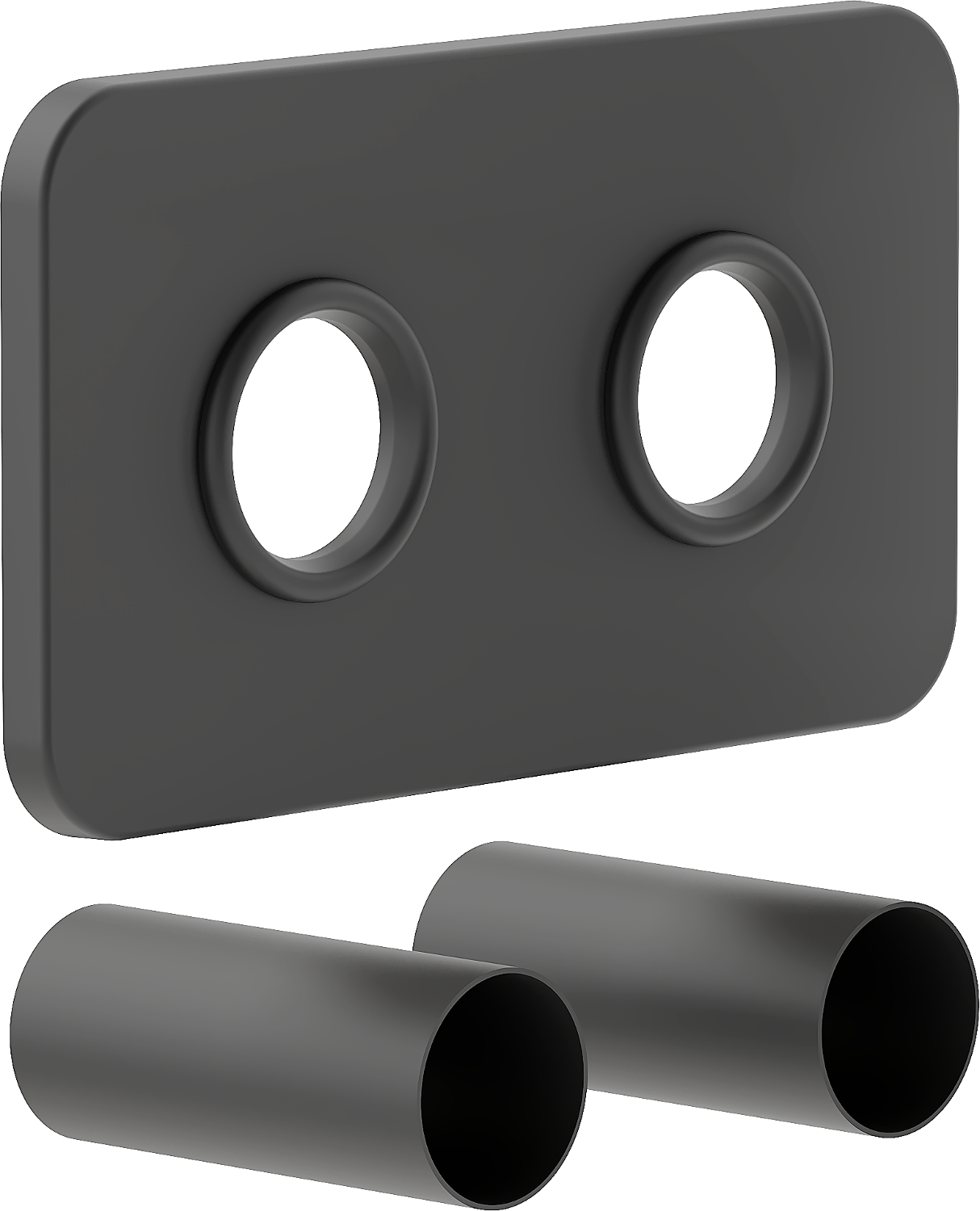 L'ensemble de masquage se compose d'une double rosace et de deux douilles destinées au montage des ensembles thermostatiques et des valves de radiateur