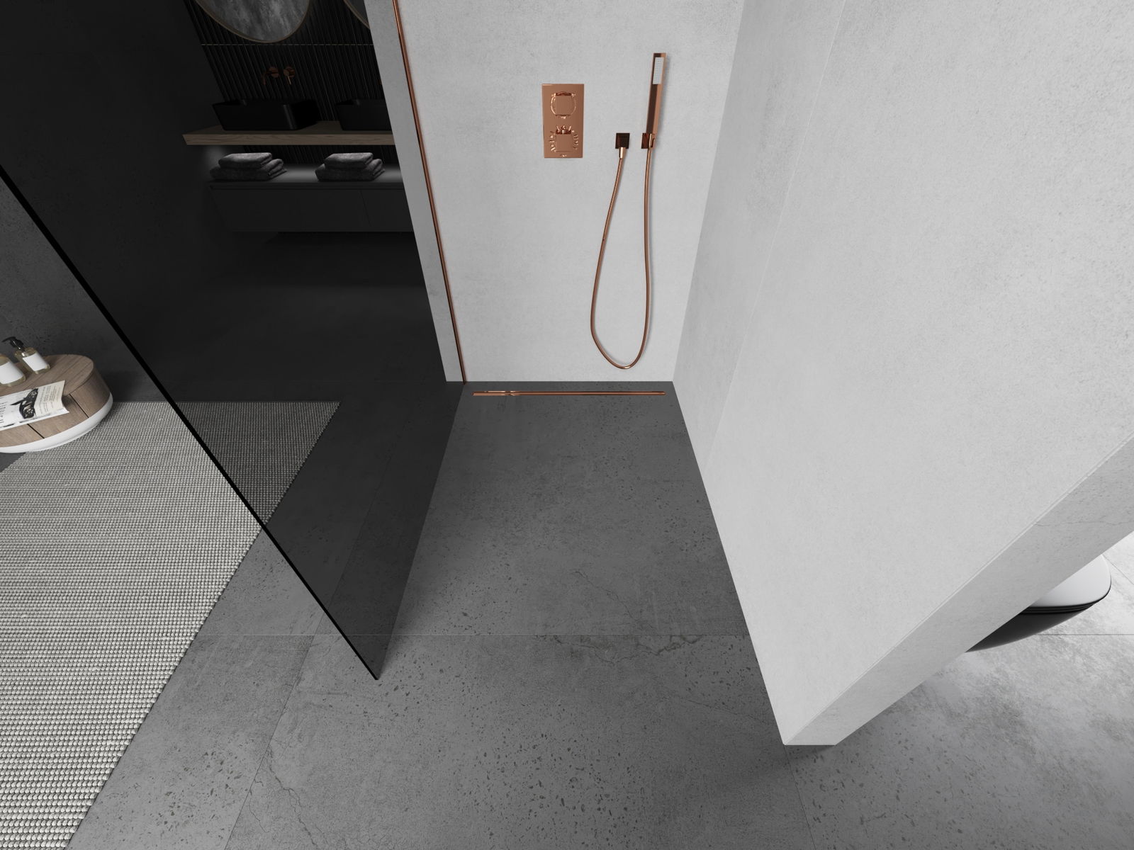 Mexen Kioto paroi de douche Walk-in 70 x 200 cm, graphite 8 mm, or rose - 800-070-101-60-40