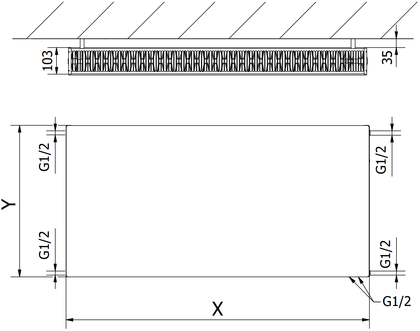 Les photos montrent le radiateur en taille 600 x 1200 mm.