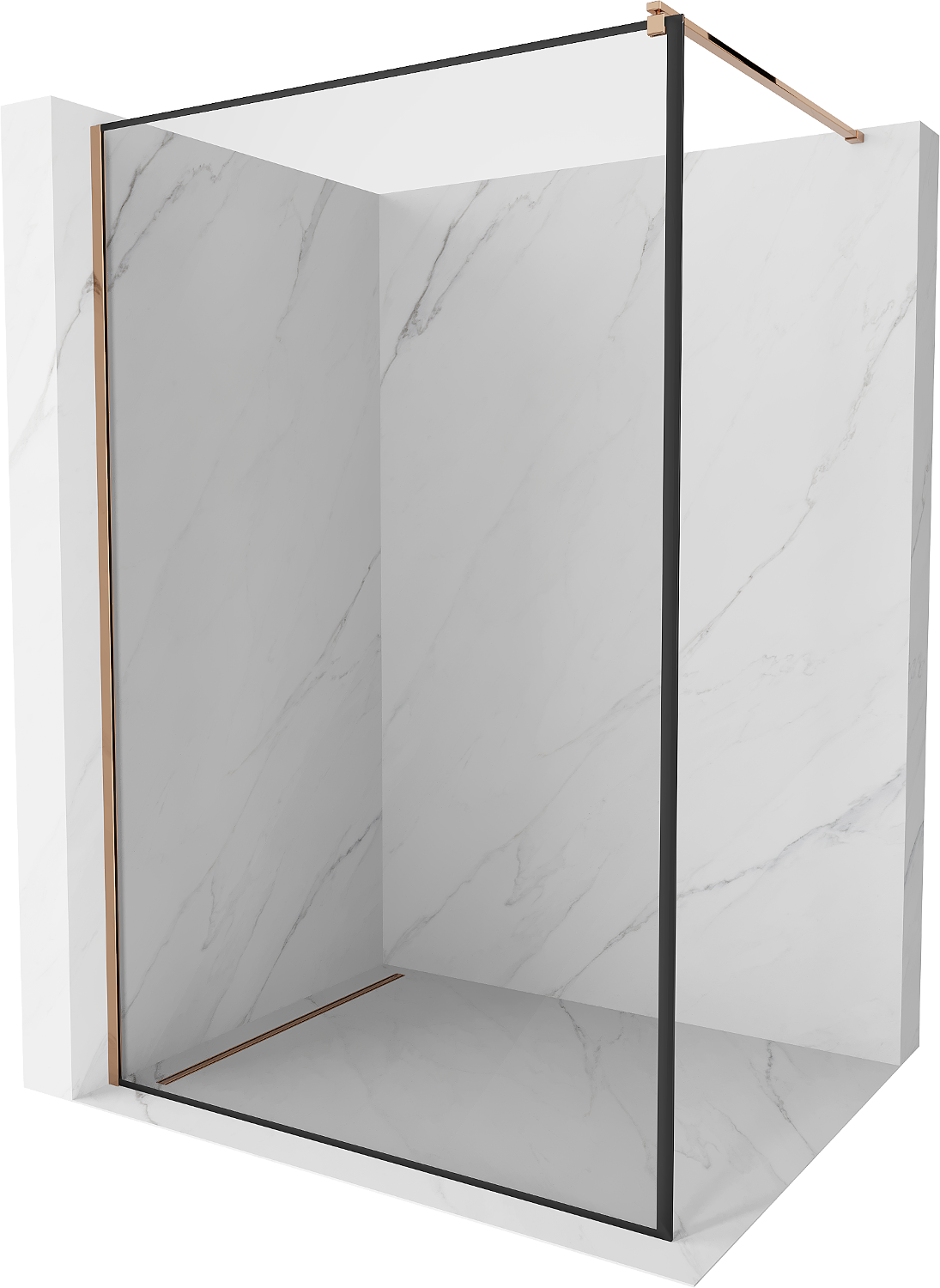 Mexen Kioto paroi de douche Walk-in 130 x 200 cm, cadre noir 8 mm, or rose - 800-130-101-60-70