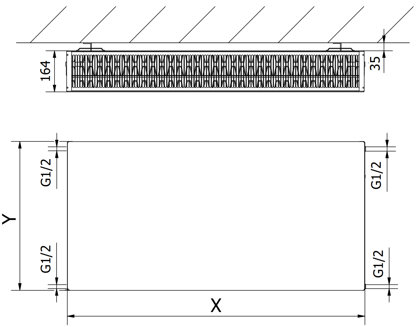 Inclus : suspensions, kit de montage, bouchons d'obturation et purgeur