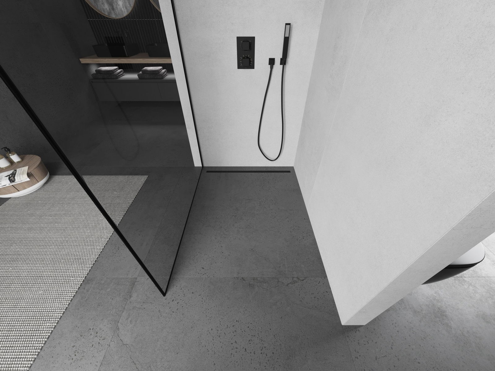 Mexen Kioto Paroi de douche Walk-in 80 x 200 cm, cadre noir 8 mm, noir - 800-080-101-70-70