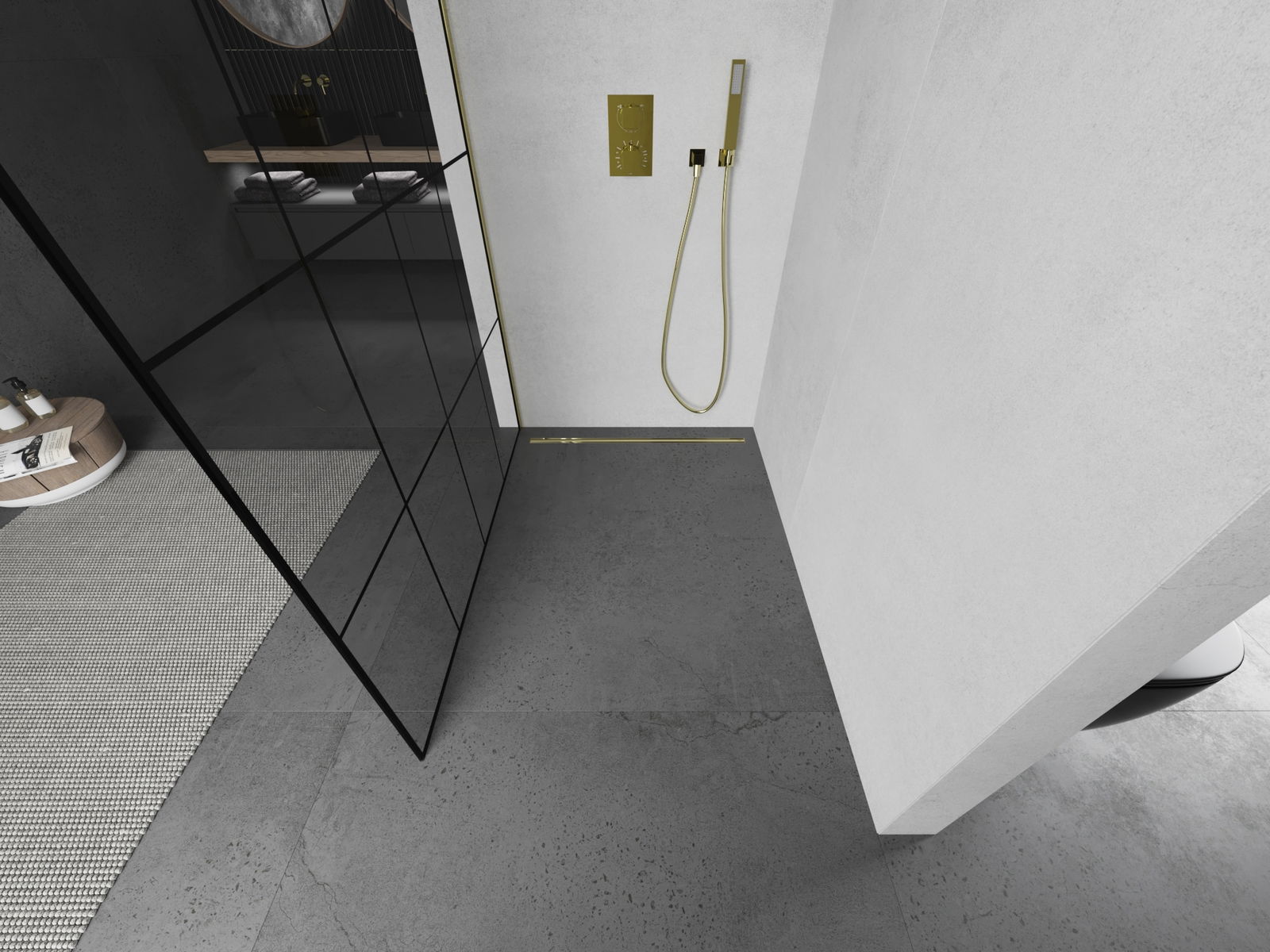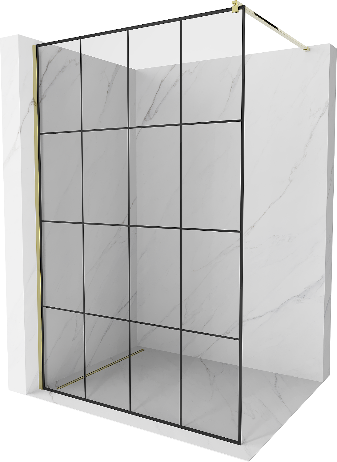 Mexen Kioto paroi de douche Walk-in 130 x 200 cm, grille noire 8 mm, dorée - 800-130-101-50-77